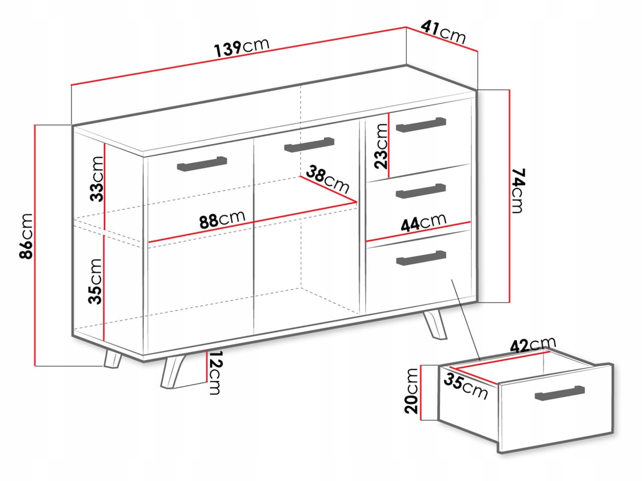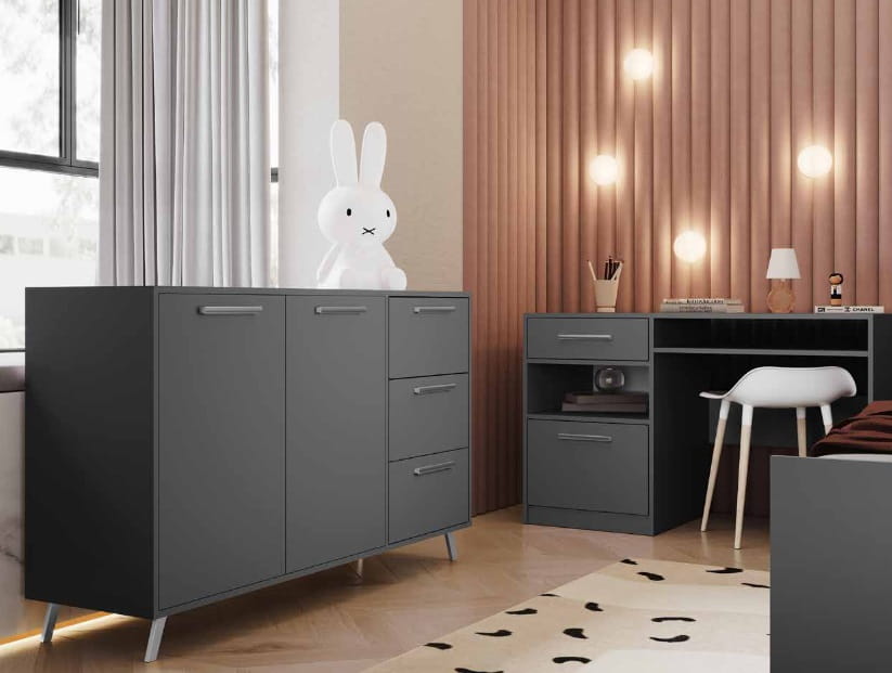 Taniej w zestawie!Komoda BALI grafit na nóżkach 138,5cm