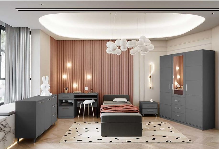 Taniej w zestawie!Szafa otwierana z szufladami BALI D3 147 grafit + lustro