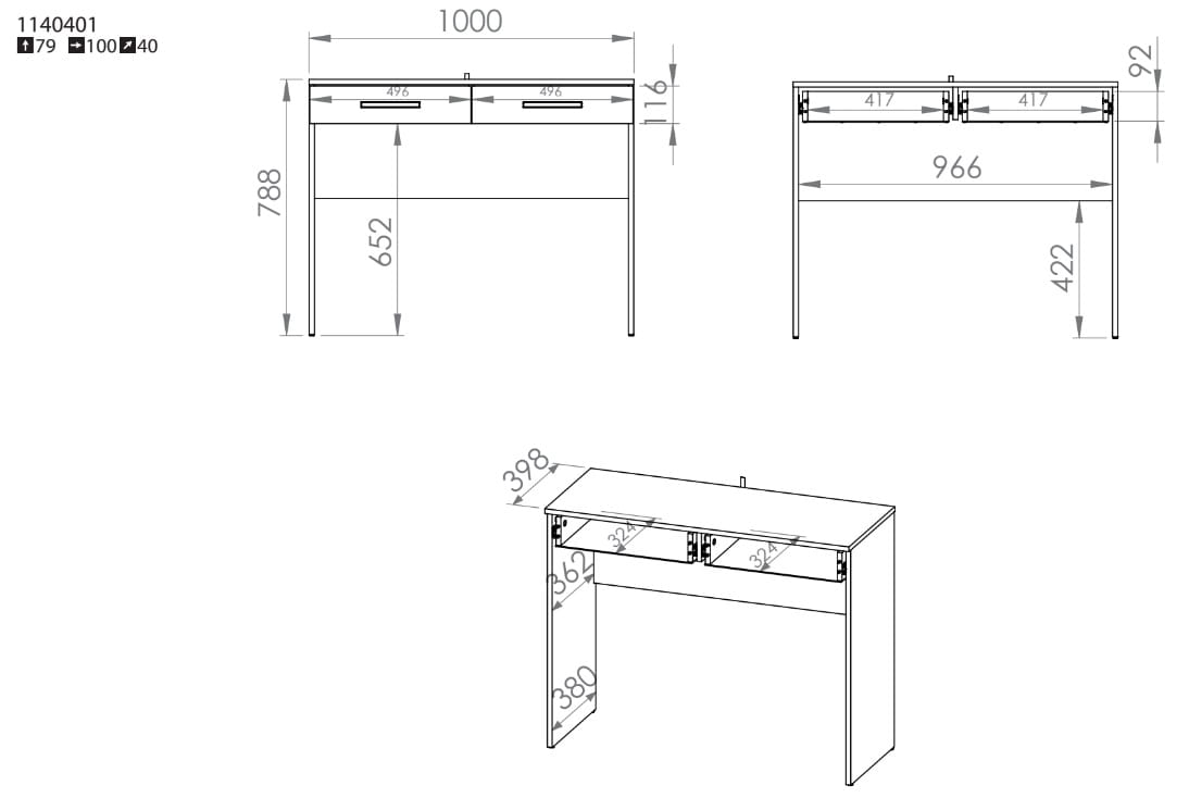 - Płyta laminowana najwyższej jakości odporna na zarysowania, wilgoć i wysoką temperaturę.