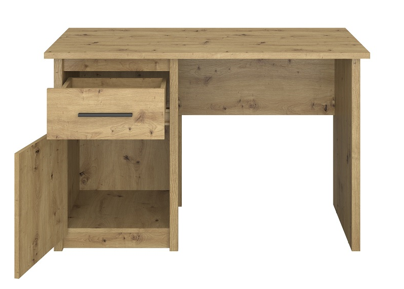 Biurko z kolekcji AYSON może stanowić idealne wyposażenie gabinetów, biur, a także pokojów młodzieżowych. Szuflada i półki zapewniają wyższy komfort użytkowania biurka, ponieważ wszystkie potrzebne, drobne przedmioty możesz mieć pod ręką, lecz nie na blacie mebla! Drewniany deseń kolekcji z pewnością ociepli wnętrze, w którym znajdzie się AYSON. Wyraźne sęki podkreślają naturalny wygląd kolekcji, który dodatkowo jest urozmaicony prostymi czarnymi uchwytami.