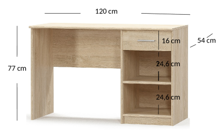 Biurko 1s z kolekcji TIPS zawiera 2 ważne elementy, które są niesamowicie potrzebne zarówno uczniom, jak i osobom pracującym w biurze, a są to półki i szuflada, które pozwalają na przemyślaną organizację przestrzeni, w której pracujemy. Biurko jest dostępne w 2 zestawieniach kolorystycznych: dąb sonoma oraz dąb sonoma z białymi frontami, taki wybór ułatwi zaaranżowanie każdego wnętrza.