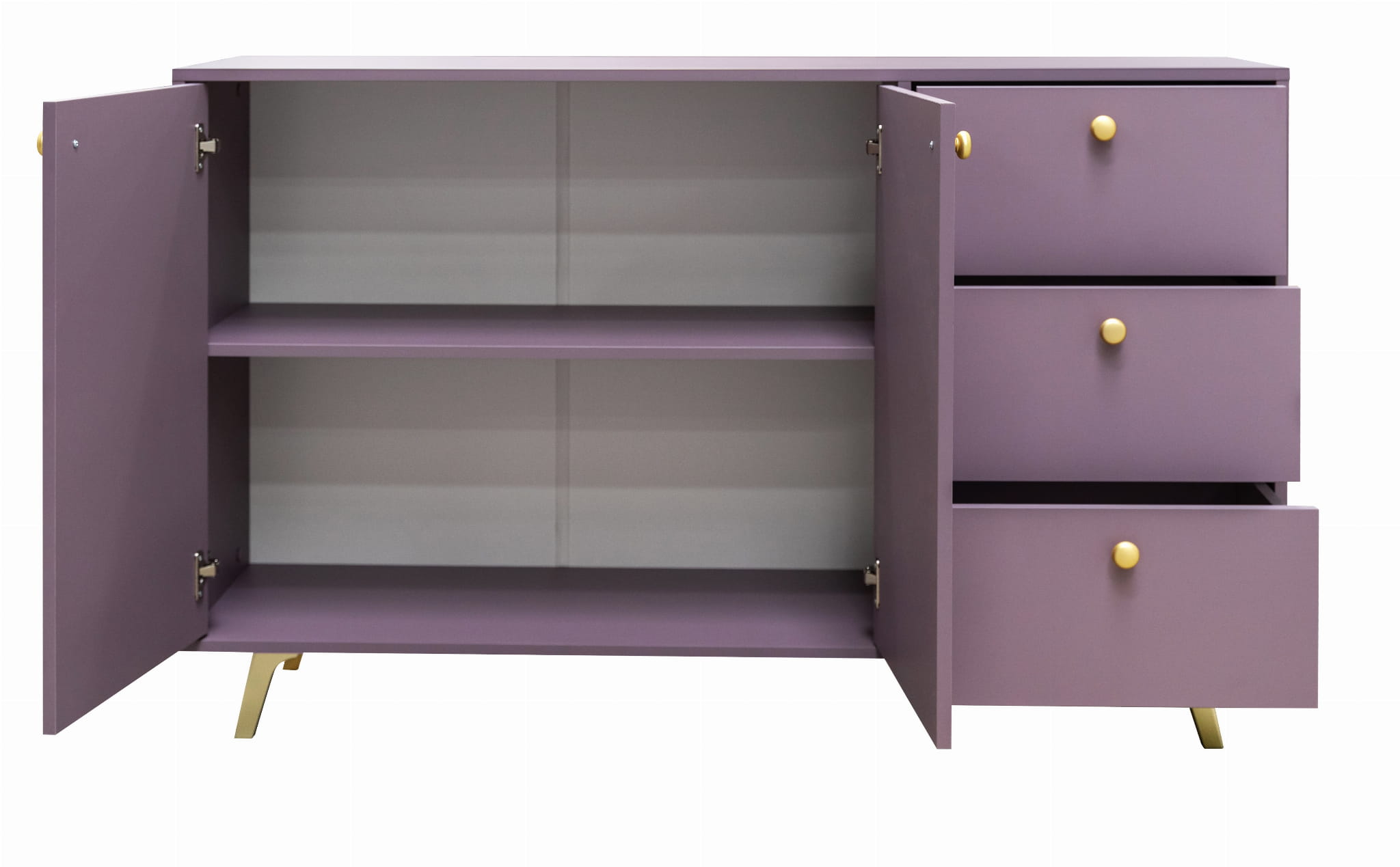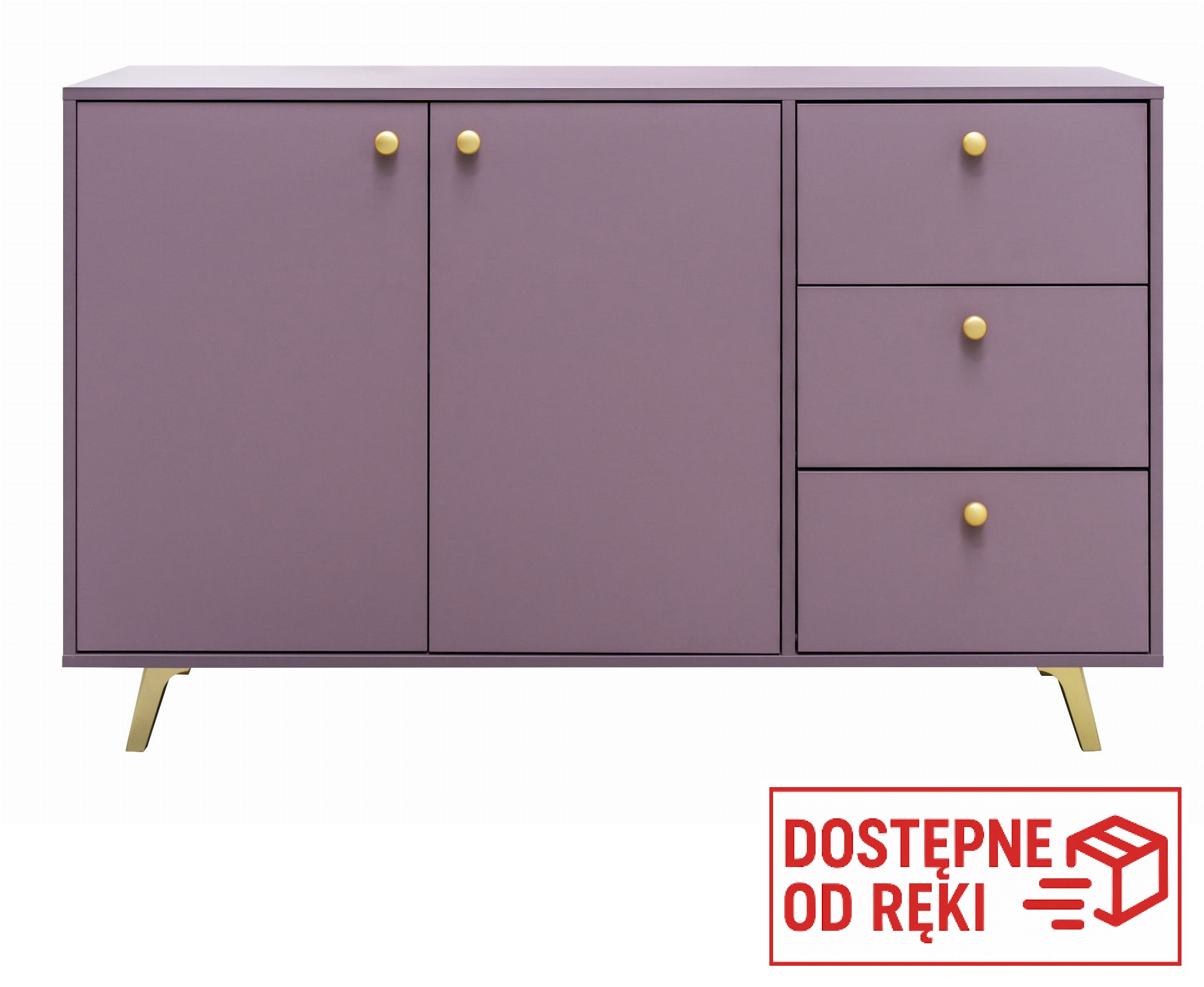 Dwudrzwiowa komoda SIENA z 3 szufladami złote nóżki ŚLIWKA