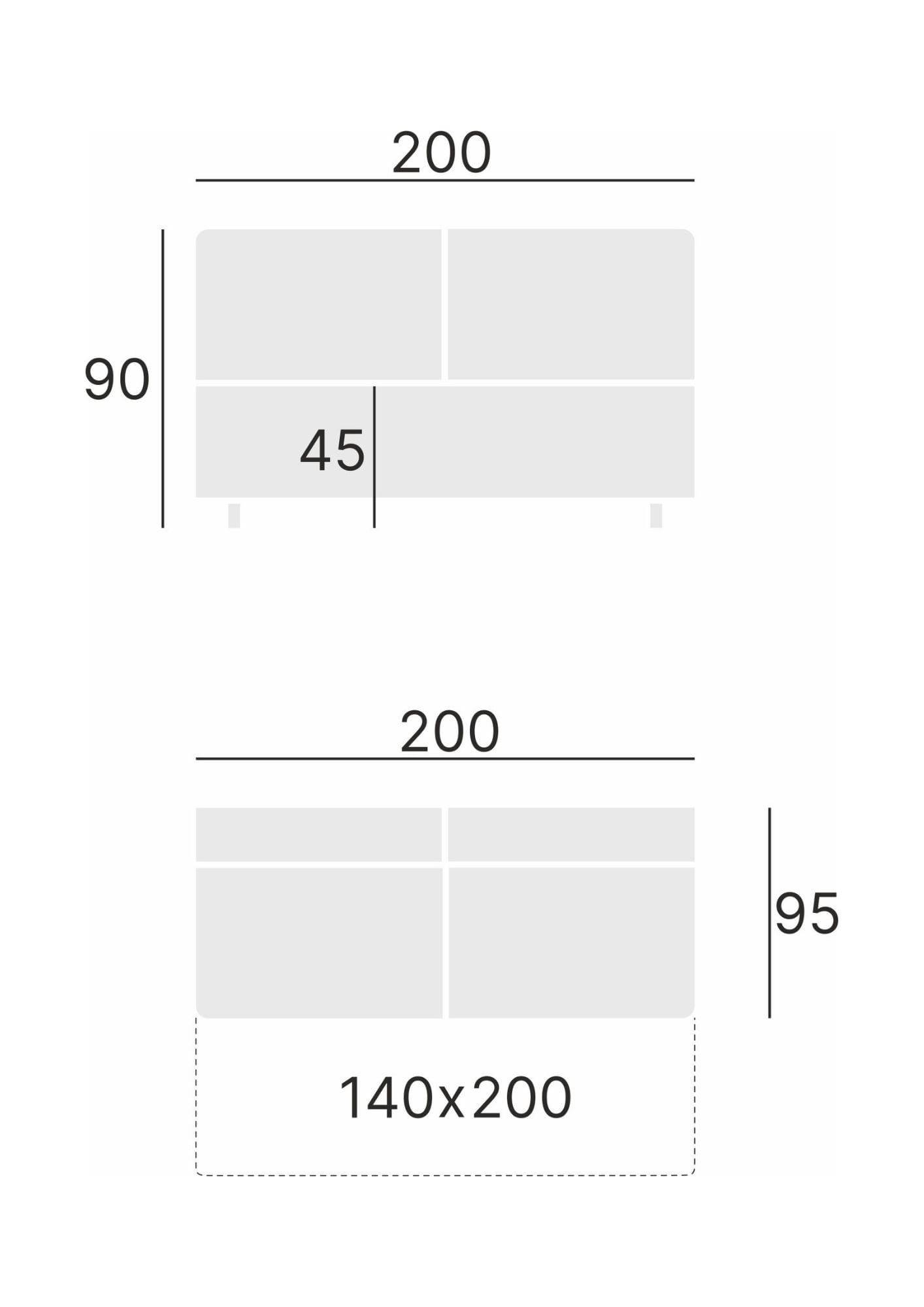 -Powierzchnia spania: 140 x 200 cm.