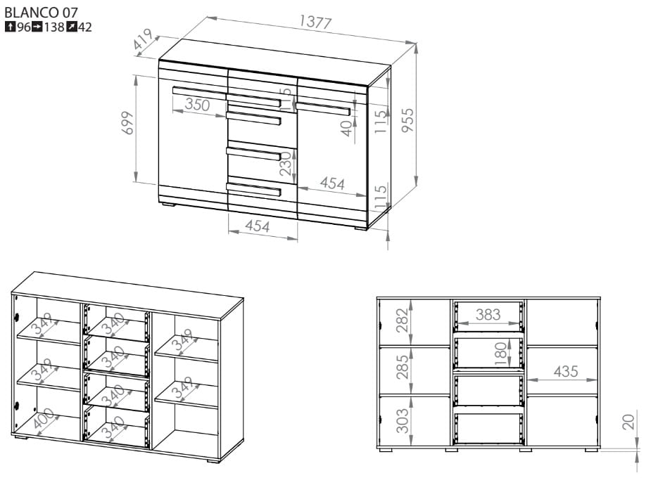 Komoda 138cm BLANCO 07 sosna śnieżna / MDF new grey
