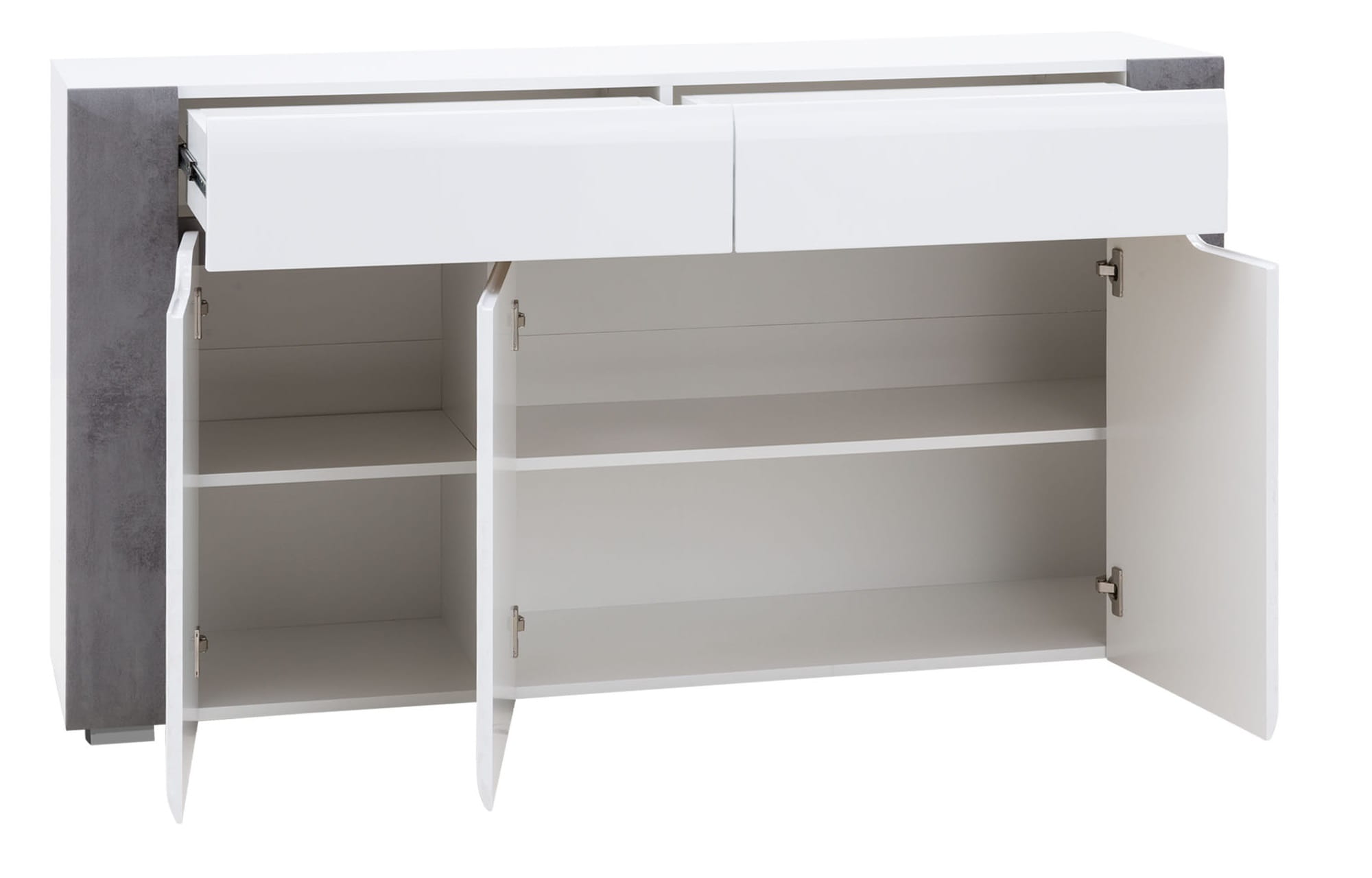 -Korpusy wykonane z połączenia wysokiej jakości płyty laminowanej oraz MDF w kolorze biały/ beton.