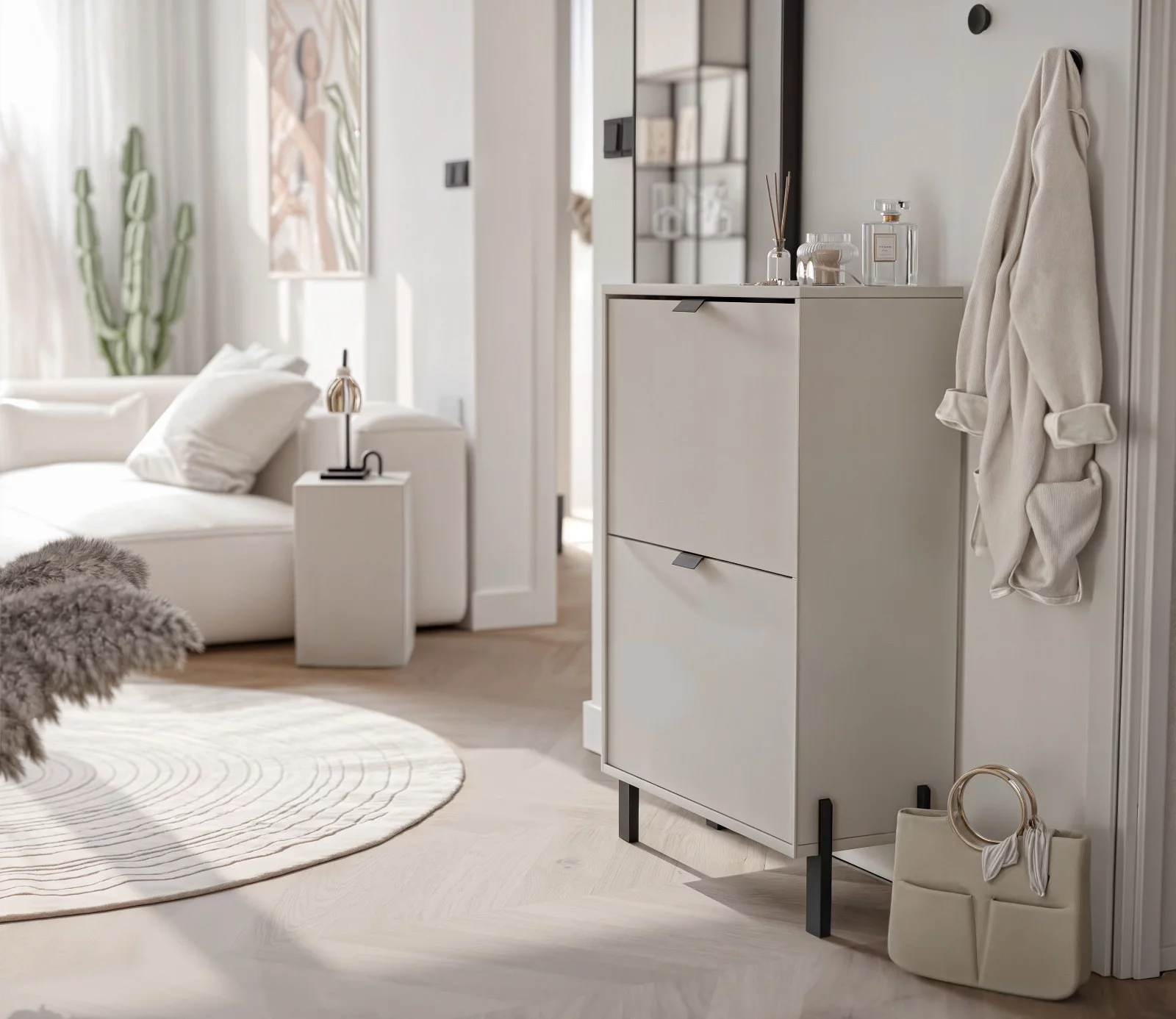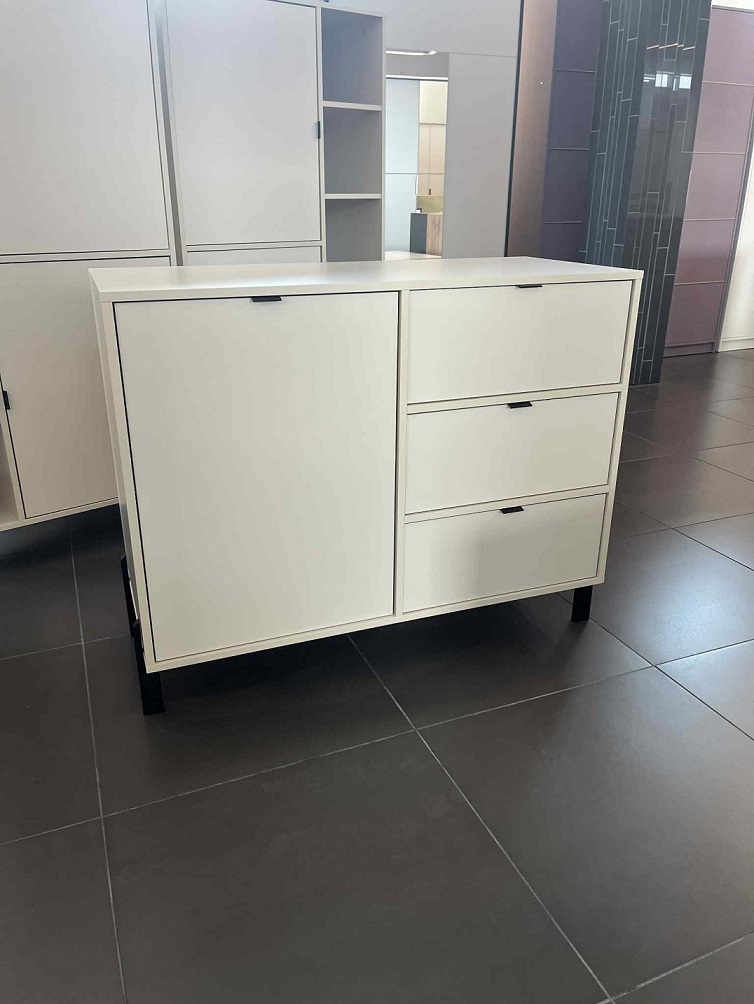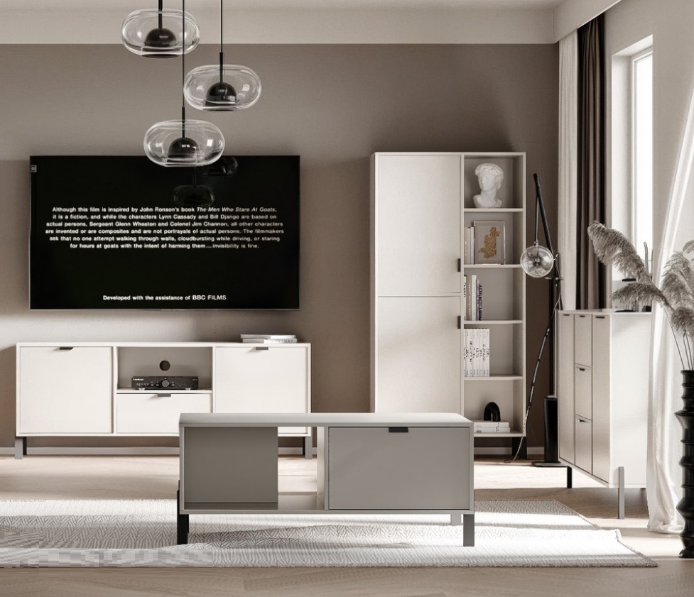 Funkcjonalna i elegancka komoda to idealne rozwiązanie do salonu, sypialni, które łączy w sobie styl i praktyczność. Mebel został wykonany w nowoczesnym stylu, z wysokiej jakości płyty laminowanej w uniwersalnym, jasnym kolorze, który rozjaśni każde wnętrze.