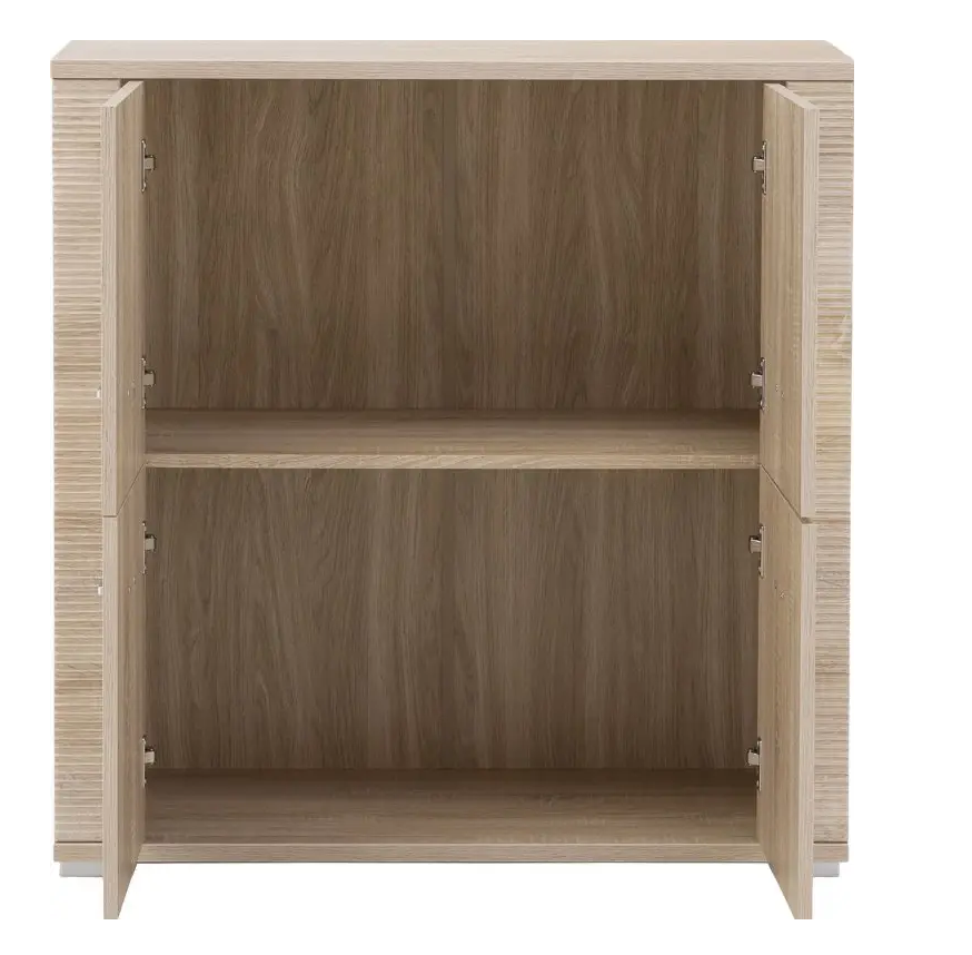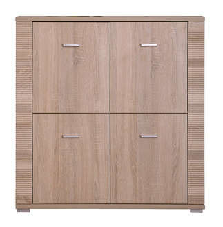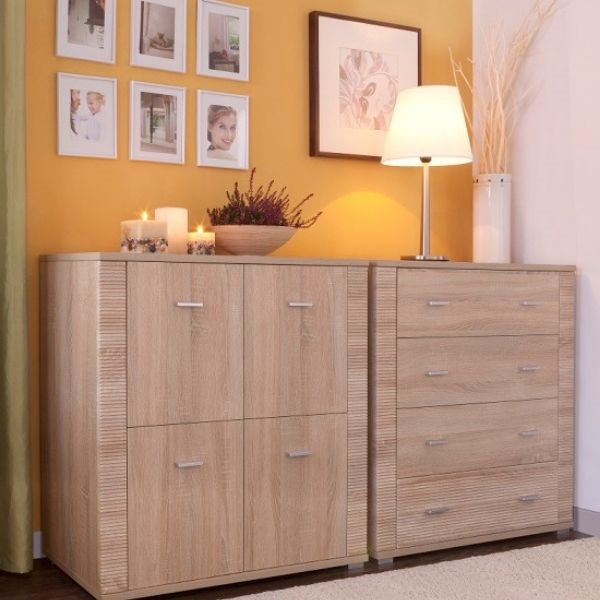 Komoda GRESS wyposażona jest w cztery szafki zamykane na fronty. Prosta forma przypadnie do gustu miłośnikom minimalizmu. Idealnie sprawdzi się w aranżacji pomieszczeń takich jak: pokój dzienny, salon, przedpokój, sypialnia, gabinet lub pokój młodzieżowy. Elegancja jasnego dekoru oraz wyrazistość ryflowanych zdobień to charakterystyczny wyróżnik tej kolekcji mebli. Kolor tych mebli naturalnie łączy się z szeroką gamą barw farb oraz tapet jakie możemy zastosować na ścianach pomieszczeń.