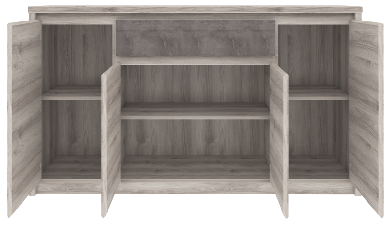 Komoda 4d1s z kolekcji Jazz sprawdzi się niemal w każdym pomieszczeniu Twojego domu. Zbudowana z szuflady oraz 4 drzwiczek. Strefa za drzwiczkami z praktycznymi, lecz niedekoncentrującymi uchwytami, zmieści wiele ubrań, książek lub innych rzeczy. Praktyczna strefa z bezuchwytową szufladą, przyda się na drobne przedmioty, gazety, czy biżuterię.
