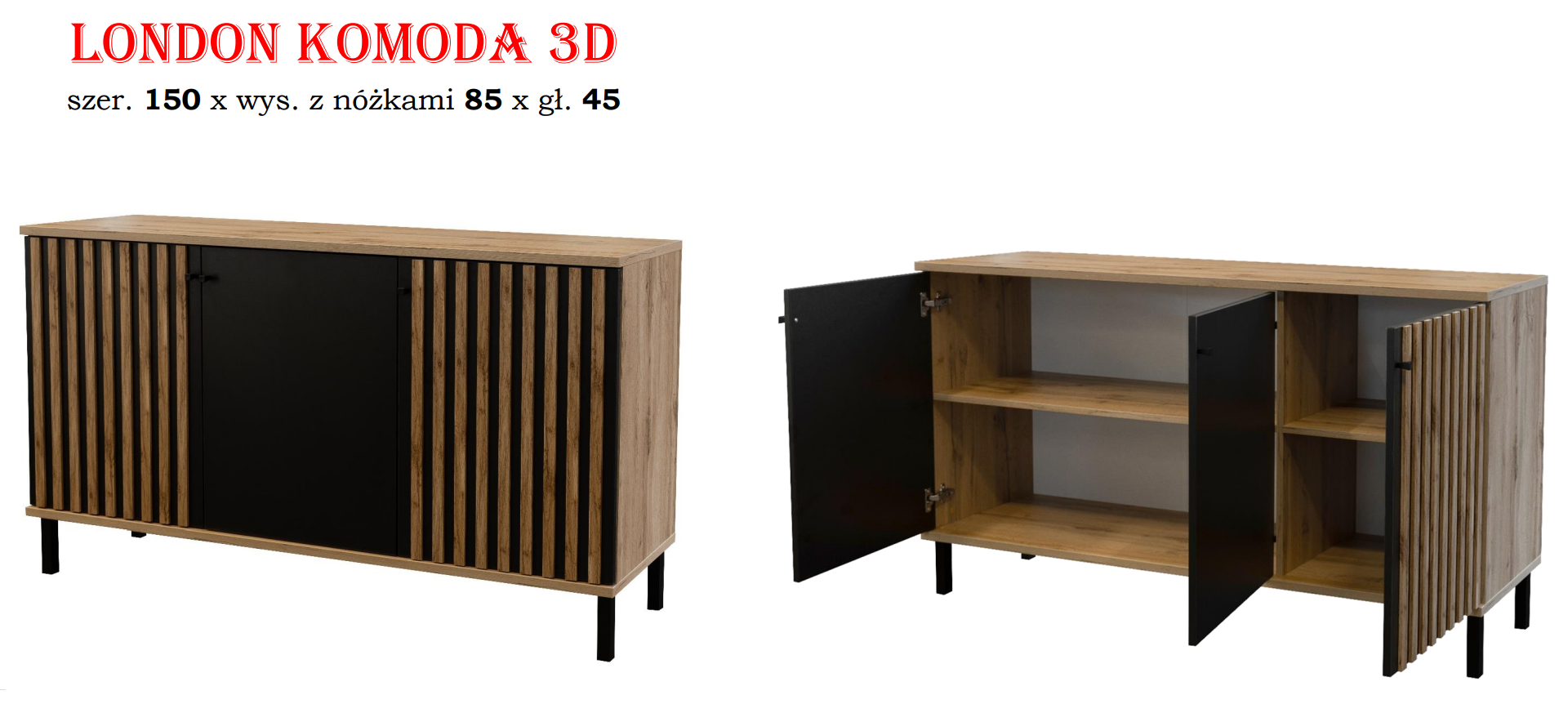 Komoda LONDON 3D jest nowoczesną propozycją, która pasuje zarówno do stylu industrialnego, nowoczesnego czy loftowego.