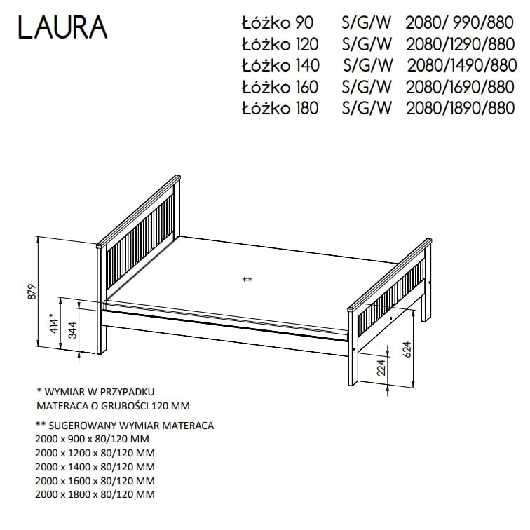 Łóżko drewniane 90x200 LAURA