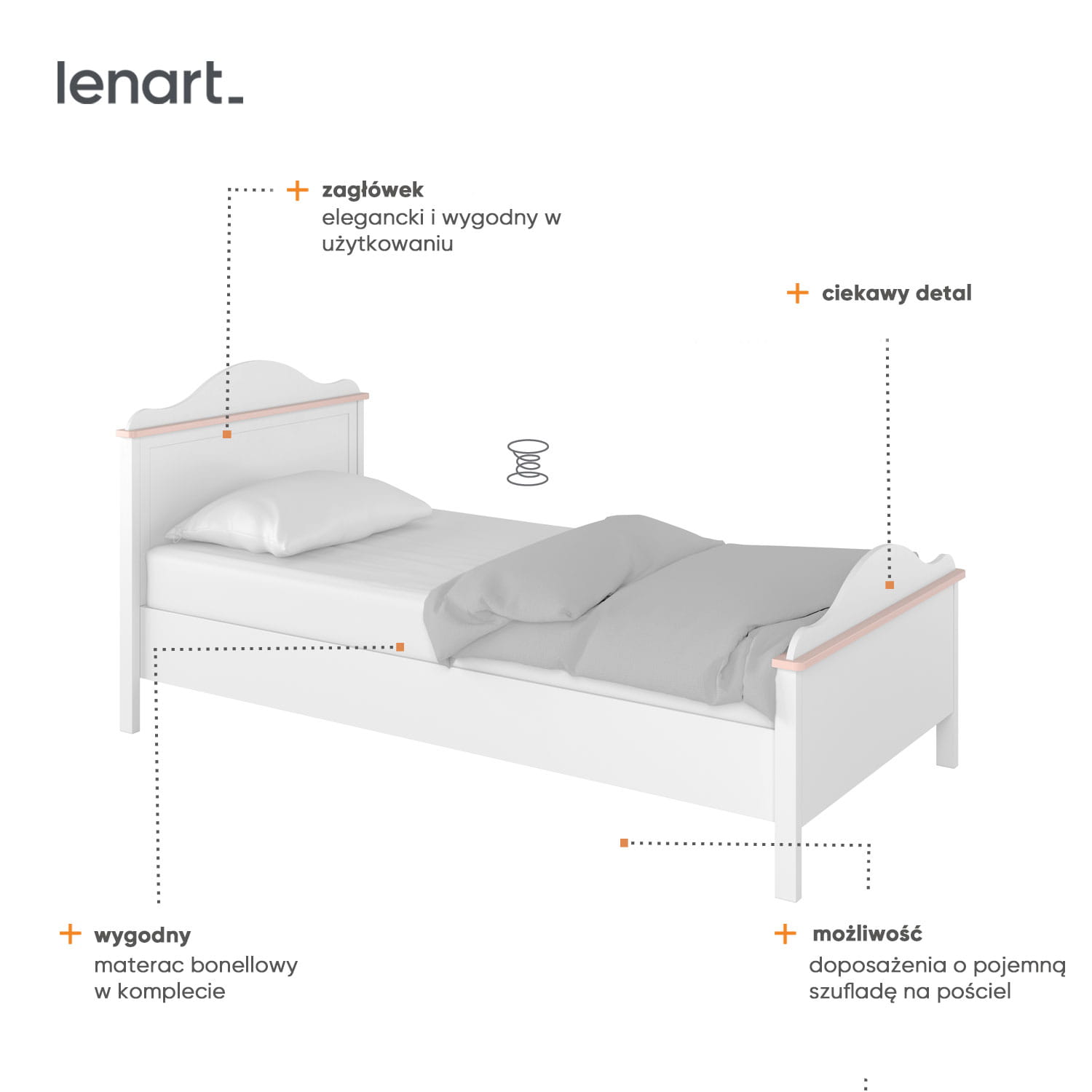 Taniej w zestawie!Łóżko LUNA LN-08 90x200 Biały/róż z materacem