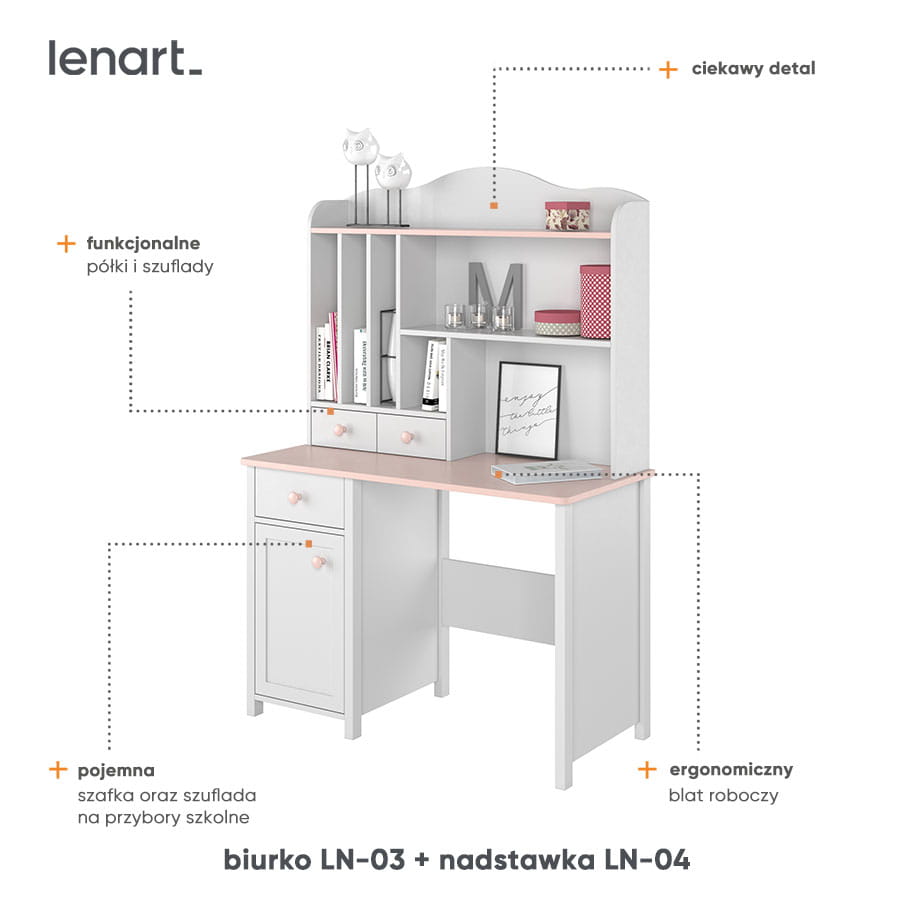 Taniej w zestawie!Biurko LUNA LN-03 Biały/róż
