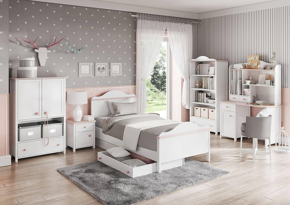 Meblami LUNA zaaranżujesz zarówno pokój dziewczynki, jak i dorastającej uczennicy. Klasyczne białe bryły z elementami pudrowego różu zachwycą swoje użytkowniczki uniwersalnym stylem i funkcjonalnością. Romantyczny charakter mebli podkreśla miękkie wykończenie w kształcie fali.
