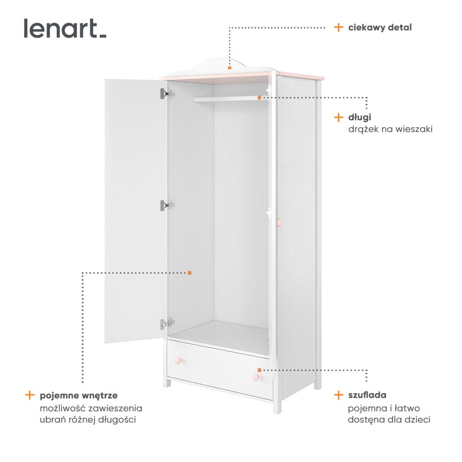 Taniej w zestawie!Szafa otwierana 2D LUNA LN-01 Biały/róż
