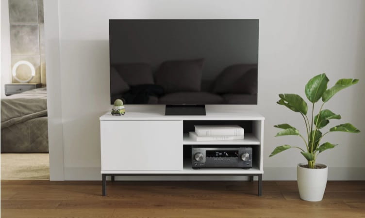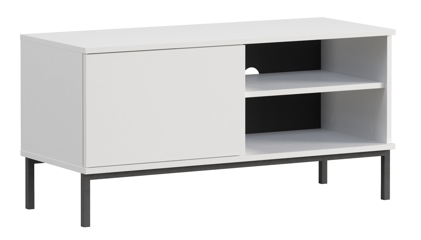 Stolik RTV 100 QUERTY 1D QT-04 został osadzony na metalowym stelażu. To propozycja dla osób lubiących połączenie nowoczesnego stylu i prostej formy. Regał dostępny w trzech kolorach: biały, czarny i hikora.
