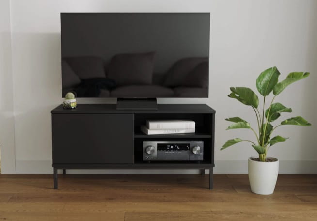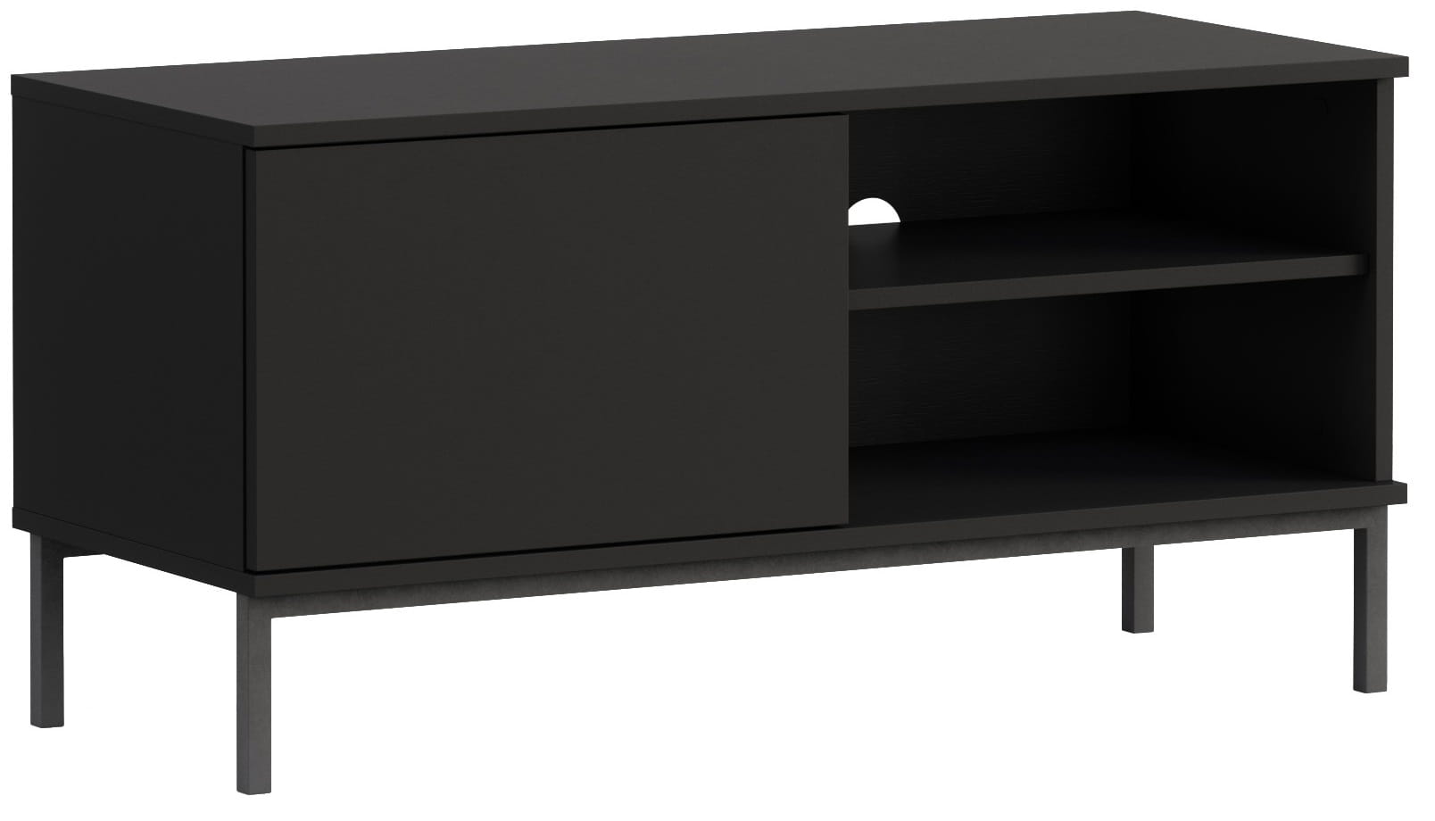 Stolik RTV 100 QUERTY 1D QT-04 został osadzony na metalowym stelażu. To propozycja dla osób lubiących połączenie nowoczesnego stylu i prostej formy. Regał dostępny w trzech kolorach: biały, czarny i hikora.