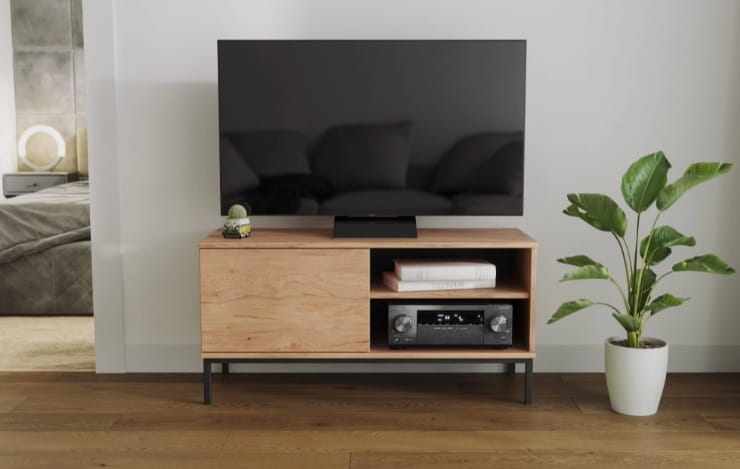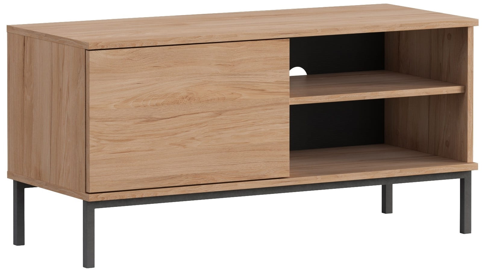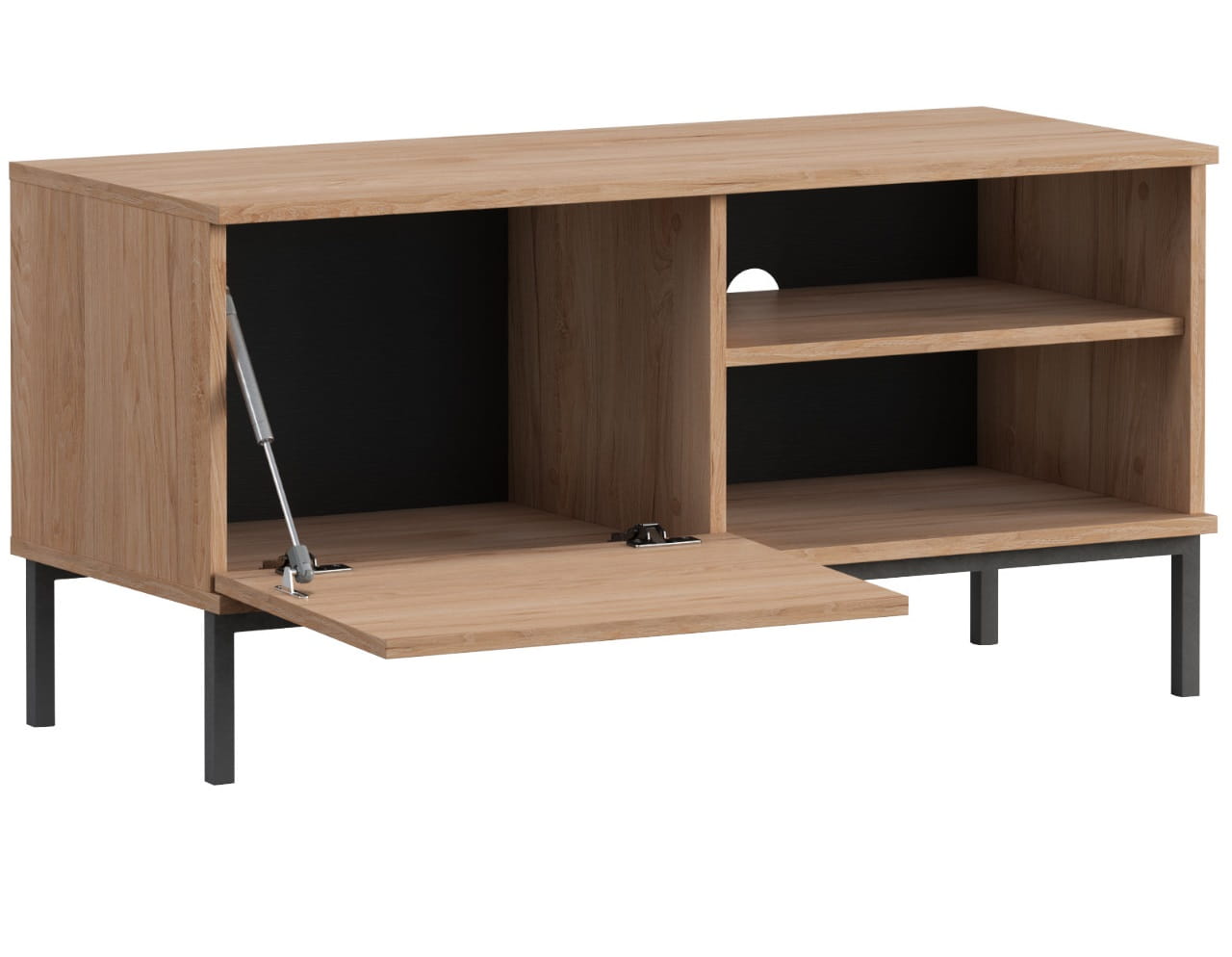 Stolik RTV 100 QUERTY 1D QT-04 został osadzony na metalowym stelażu. To propozycja dla osób lubiących połączenie nowoczesnego stylu i prostej formy. Regał dostępny w trzech kolorach: biały, czarny i hikora.