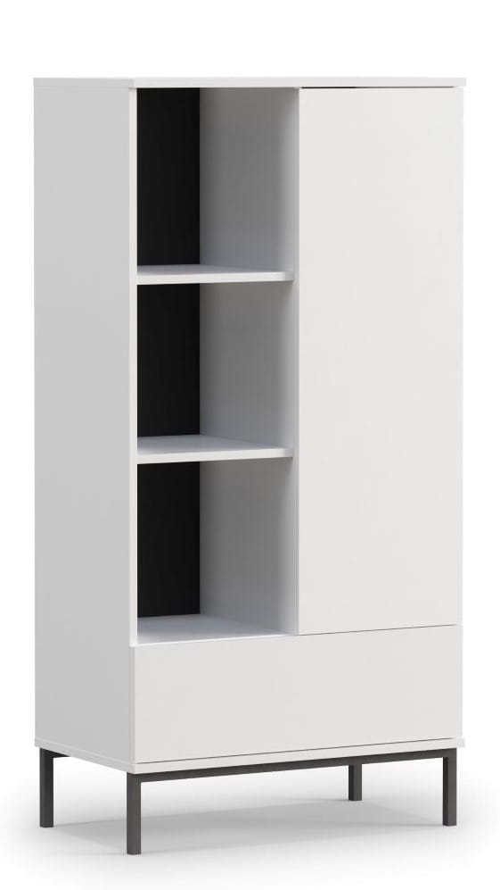 Regał R70 QUERTY QT-03 został osadzony na metalowym stelażu. To propozycja dla osób lubiących połączenie nowoczesnego stylu i prostej formy. Regał dostępny w trzech kolorach: biały, czarny i hikora.