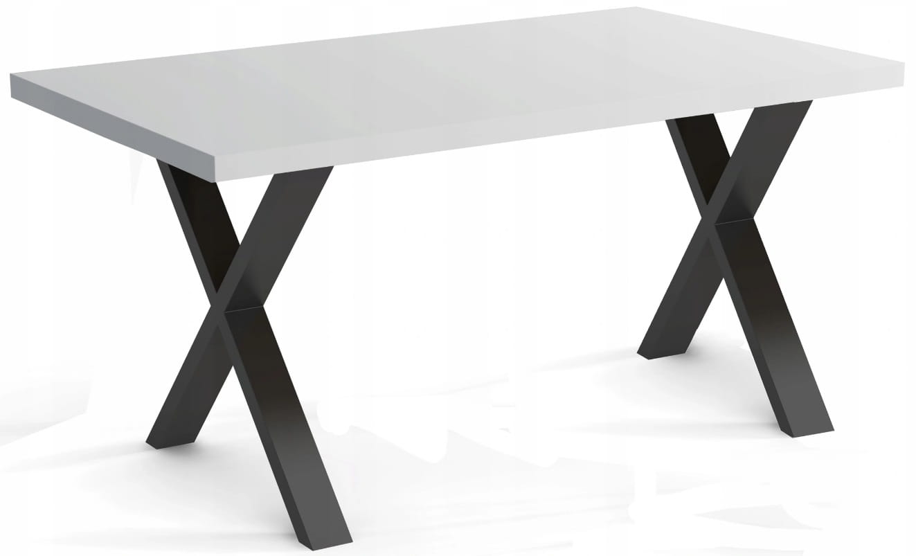 Stół nierozkładany 180x90 LOFT 3 blat biały/ nogi metalowe czarne X
