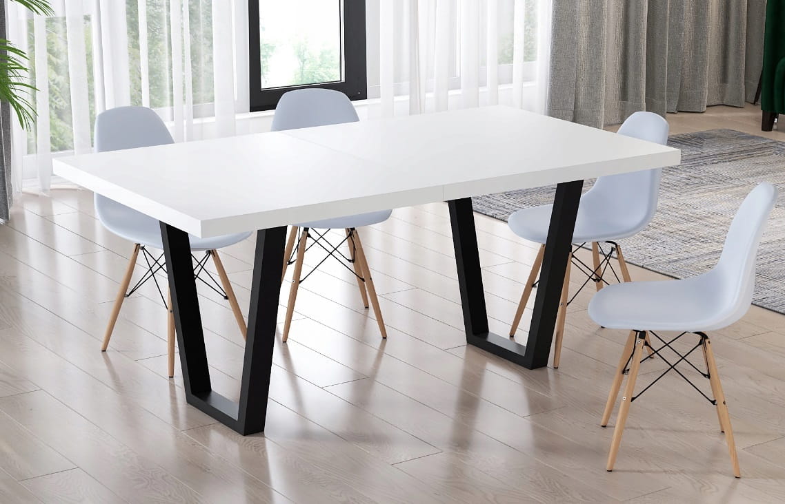Stół rozkładany 140x80+2X50 LOFT 2 blat biały / nogi metalowe czarne U proste