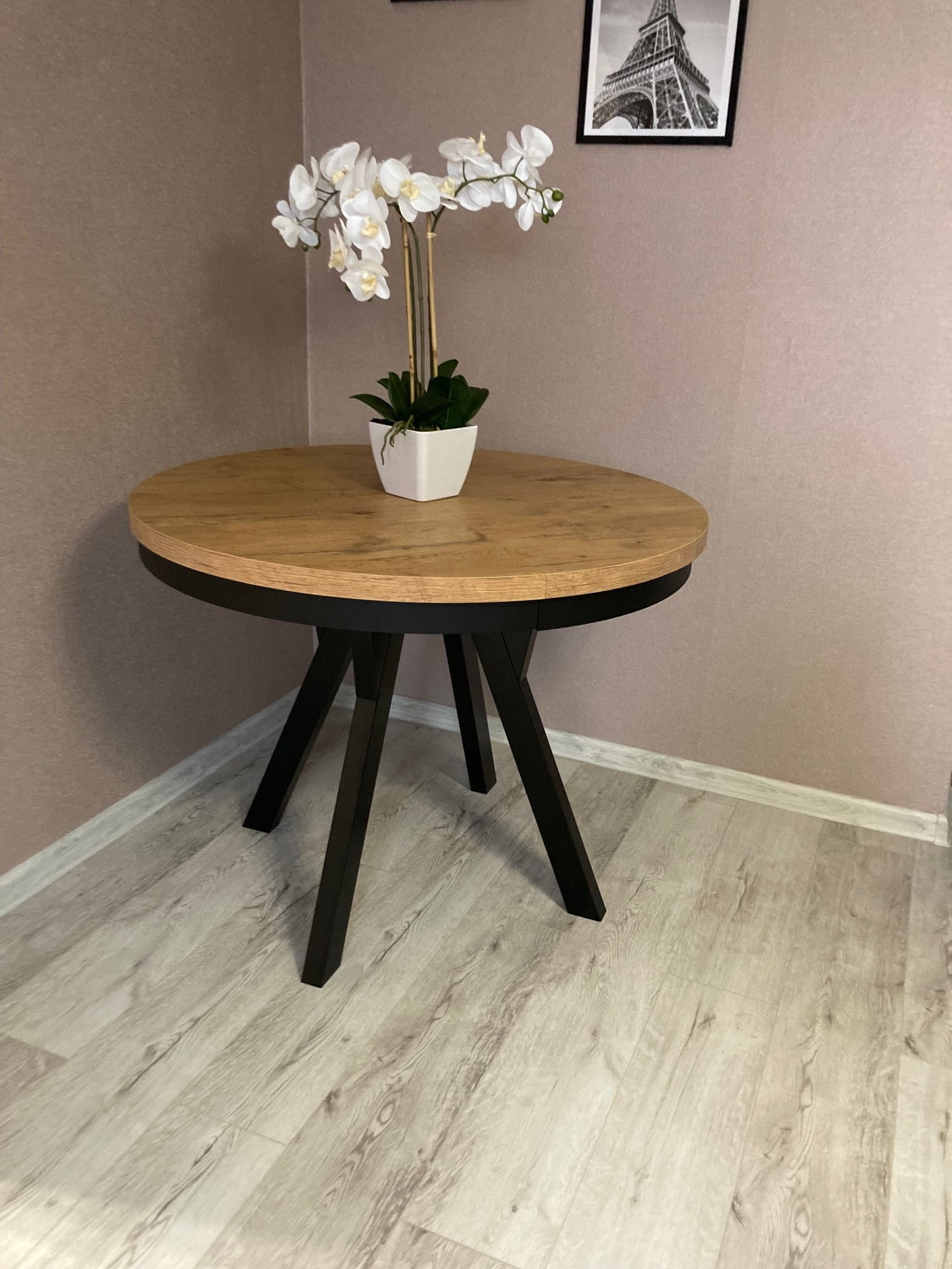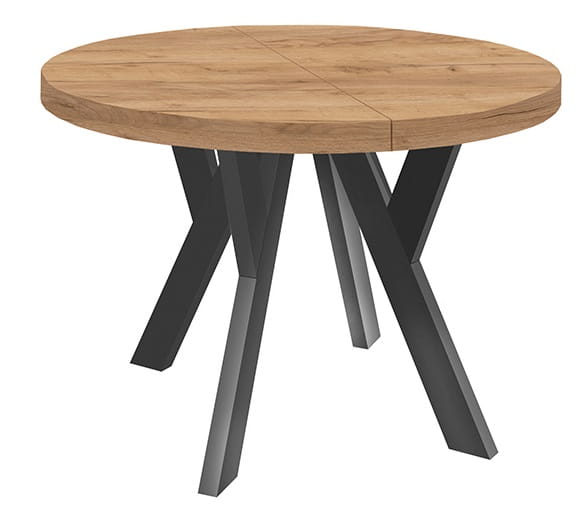 Stół okrągły rozkładany 90+2x50 dąb craft/ nogi czarne