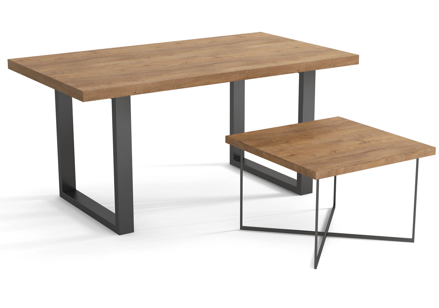 Stół rozkładany 140x80+2X50 LOFT 2 blat dąb craft / nogi metalowe czarne U proste