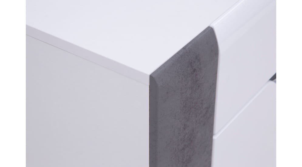 -Korpusy wykonane z połączenia wysokiej jakości płyty laminowanej oraz MDF w kolorze biały/ beton.