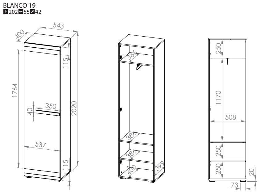 Szafa BLANCO 19 sosna śnieżna / MDF new grey