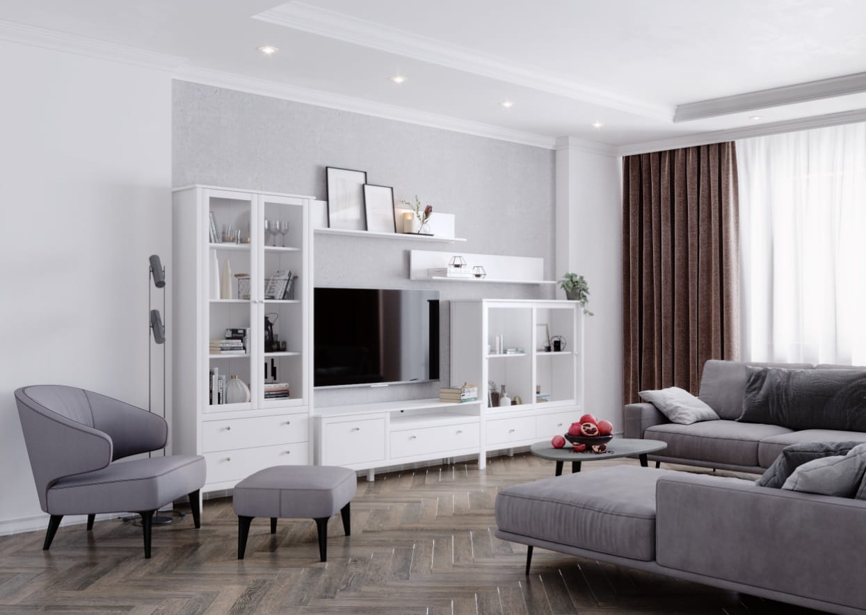 - Nogi poprowadzone wzdłuż wysokości brył nawiązują do tradycyjnego stylu.