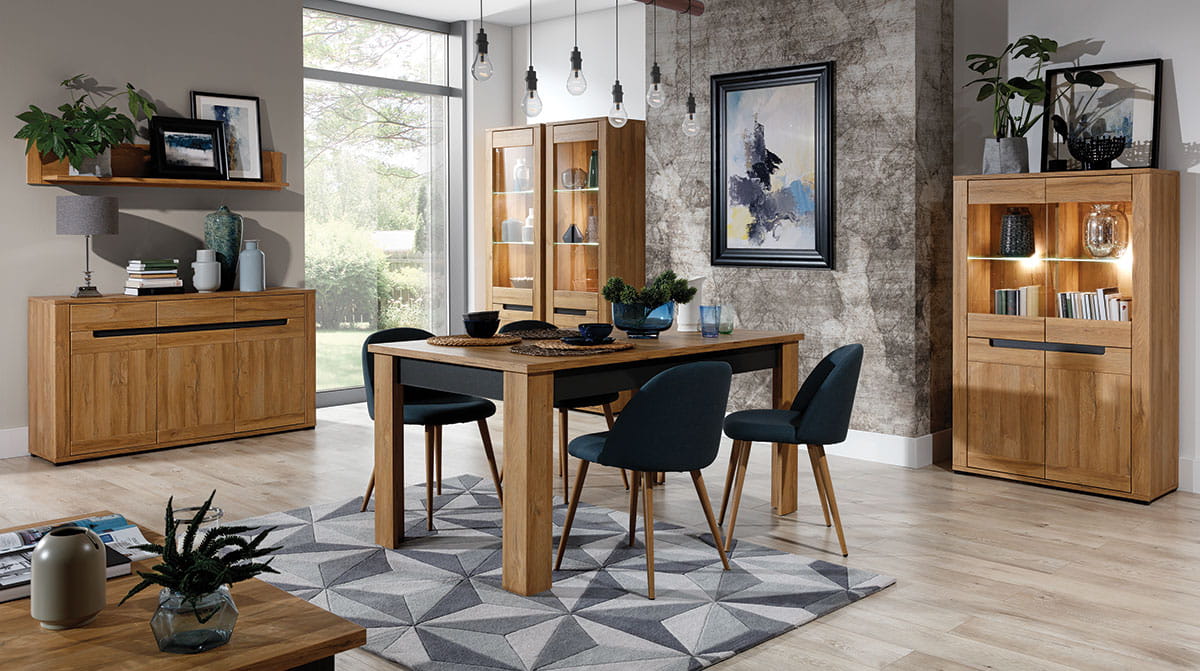 -Korpusy wykonane z połączenia wysokiej jakości płyty laminowanej oraz MDF w kolorze dąb grandson/ grafit