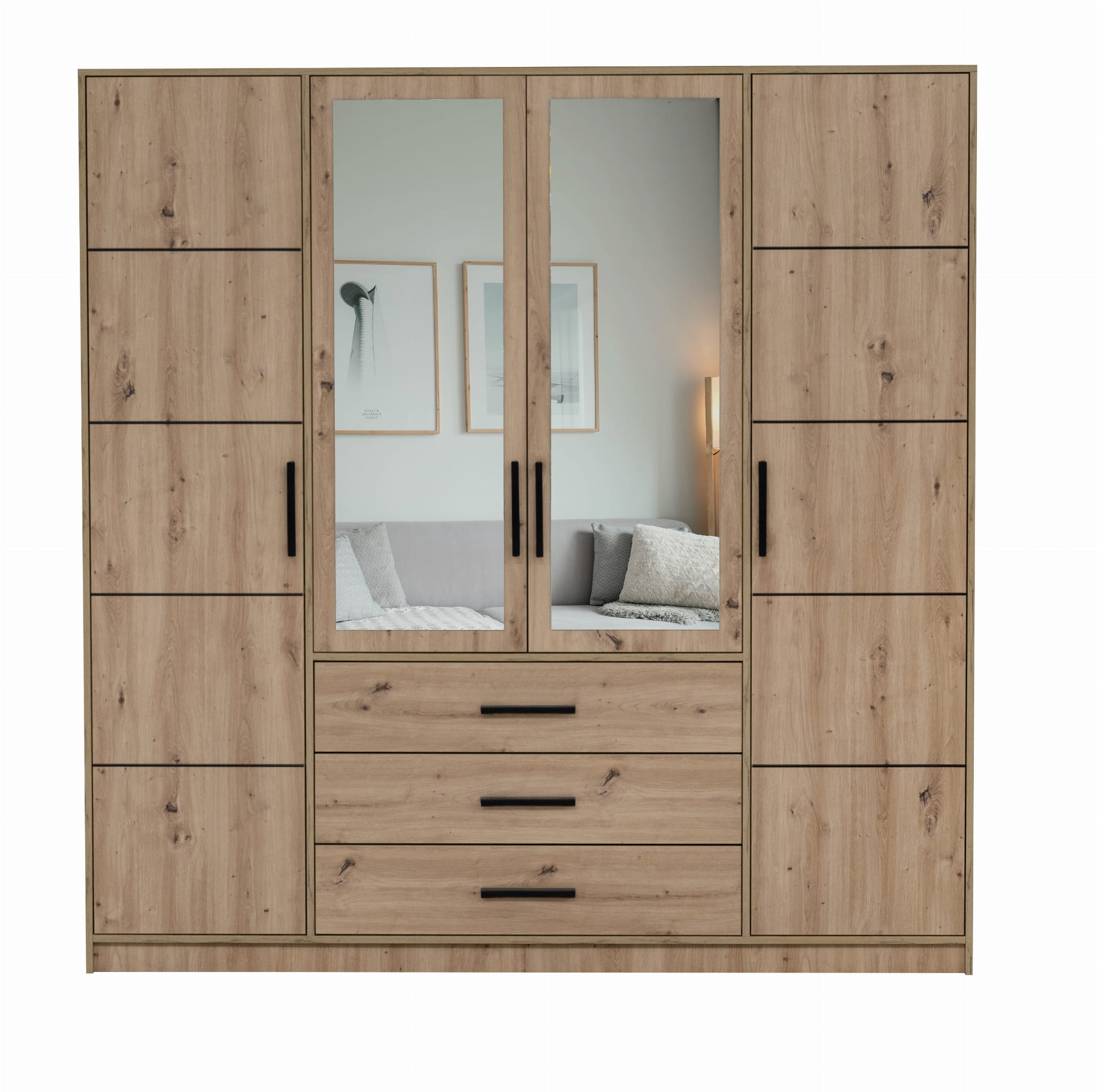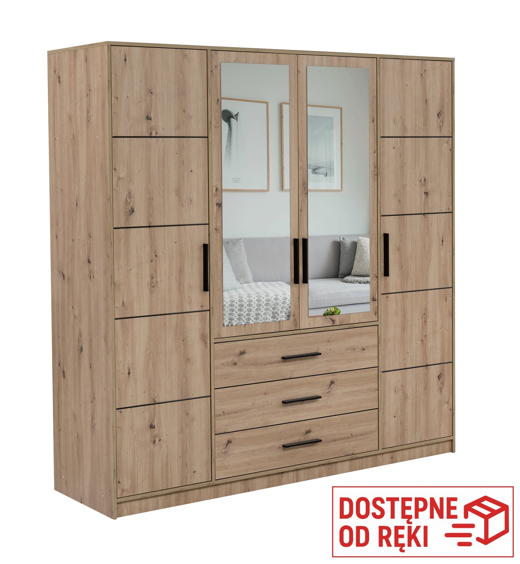 Szafa otwierana, garderoba z lustrem KOS D4 196x200x57,5 cm dąb artisan