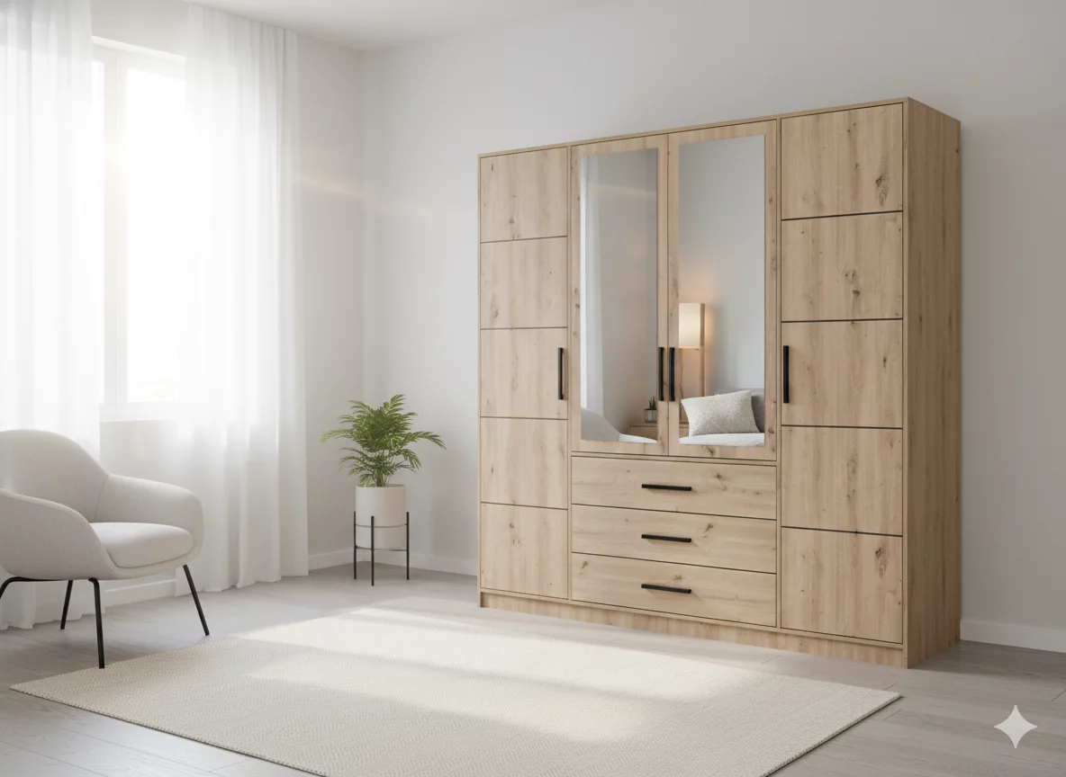 Szafa w kolorze Dąb Artisan to doskonałe rozwiązanie dla osób poszukujących funkcjonalnego mebla do przechowywania. Wykonana z wysokiej jakości płyty meblowej, prezentuje się elegancko i nowocześnie. Szafa jest dostępna w dwóch wariantach: z nadstawką lub bez niej, aby zaspokoić różne potrzeby przechowywania. Drzwi szafy są lustrzanymi, dodając wnętrzu głębi i optycznie powiększając przestrzeń. Wnętrze szafy jest dobrze zaprojektowane, oferując miejsce na półki, wieszaki i drobne przedmioty. Jest to praktyczne i estetyczne rozwiązanie dla małych pomieszczeń.