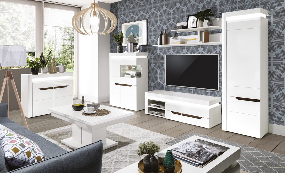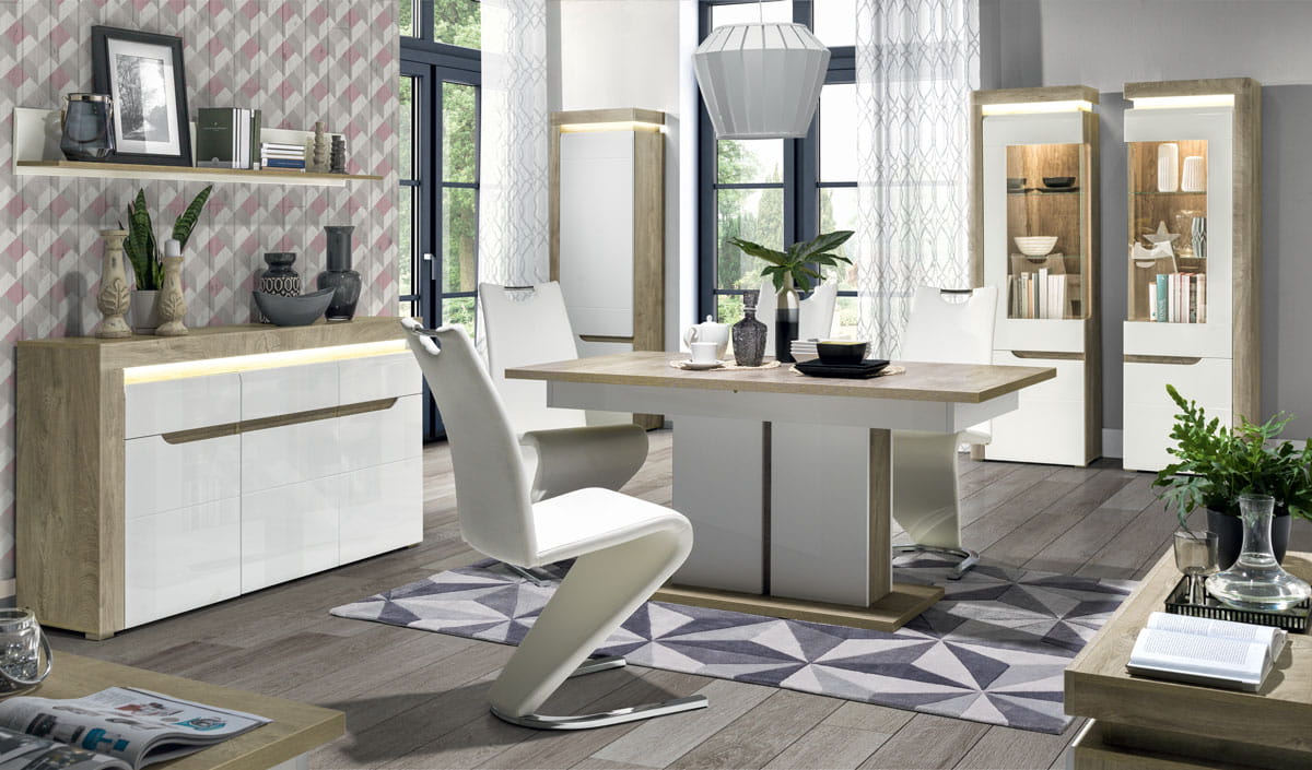 -KOLORYSTYKA ; korpus - biały - biały / dąb maggia , fronty - biały połysk