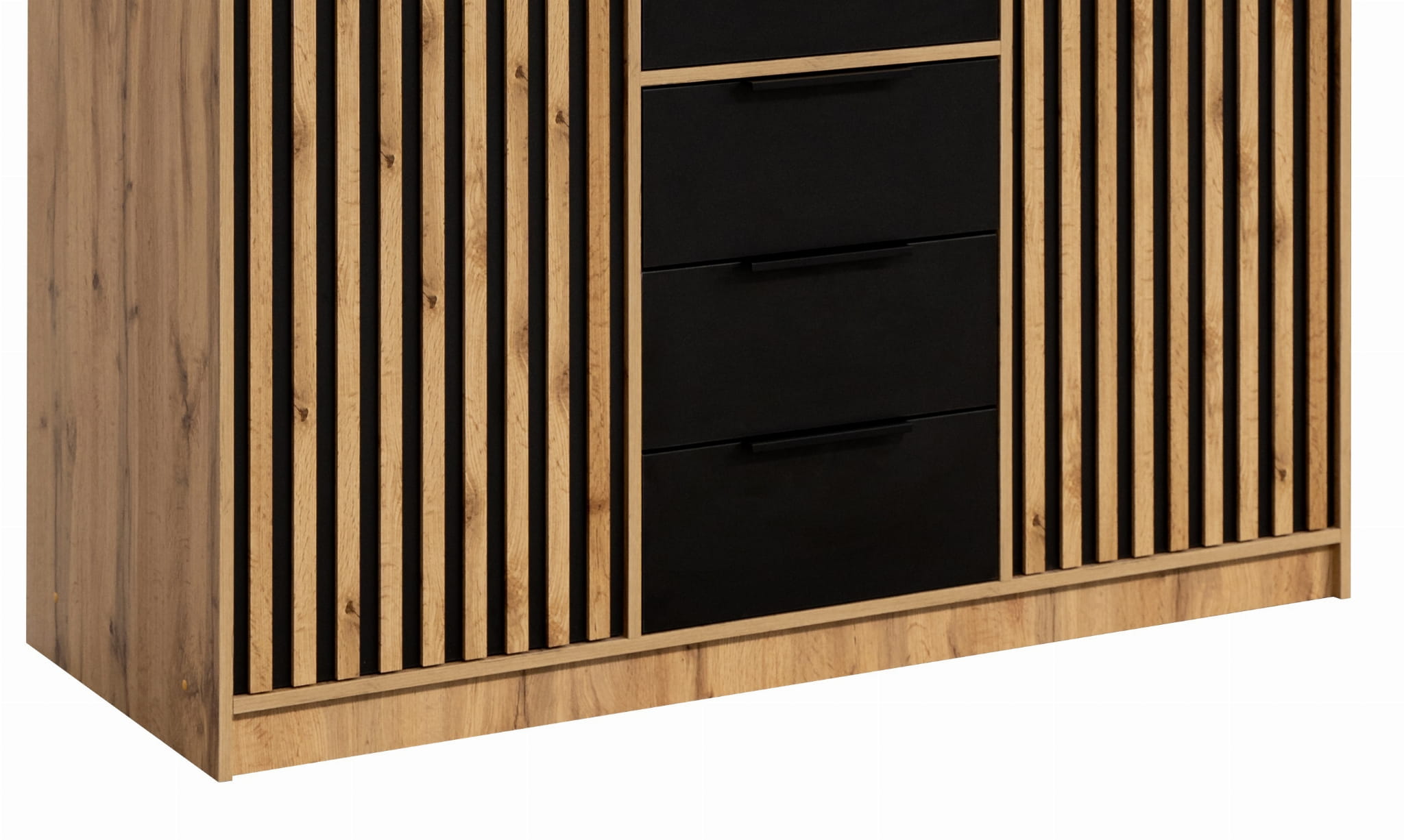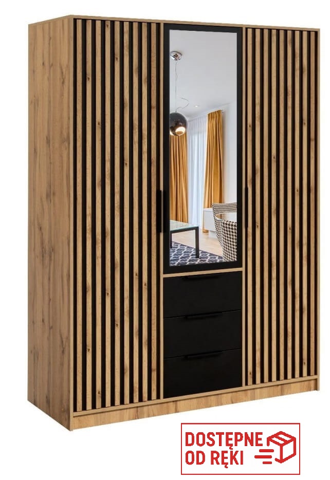 Szafa otwierana z lustrem i lamelami 150cm BALI LUX D3 dąb wotan/czarny/lustro