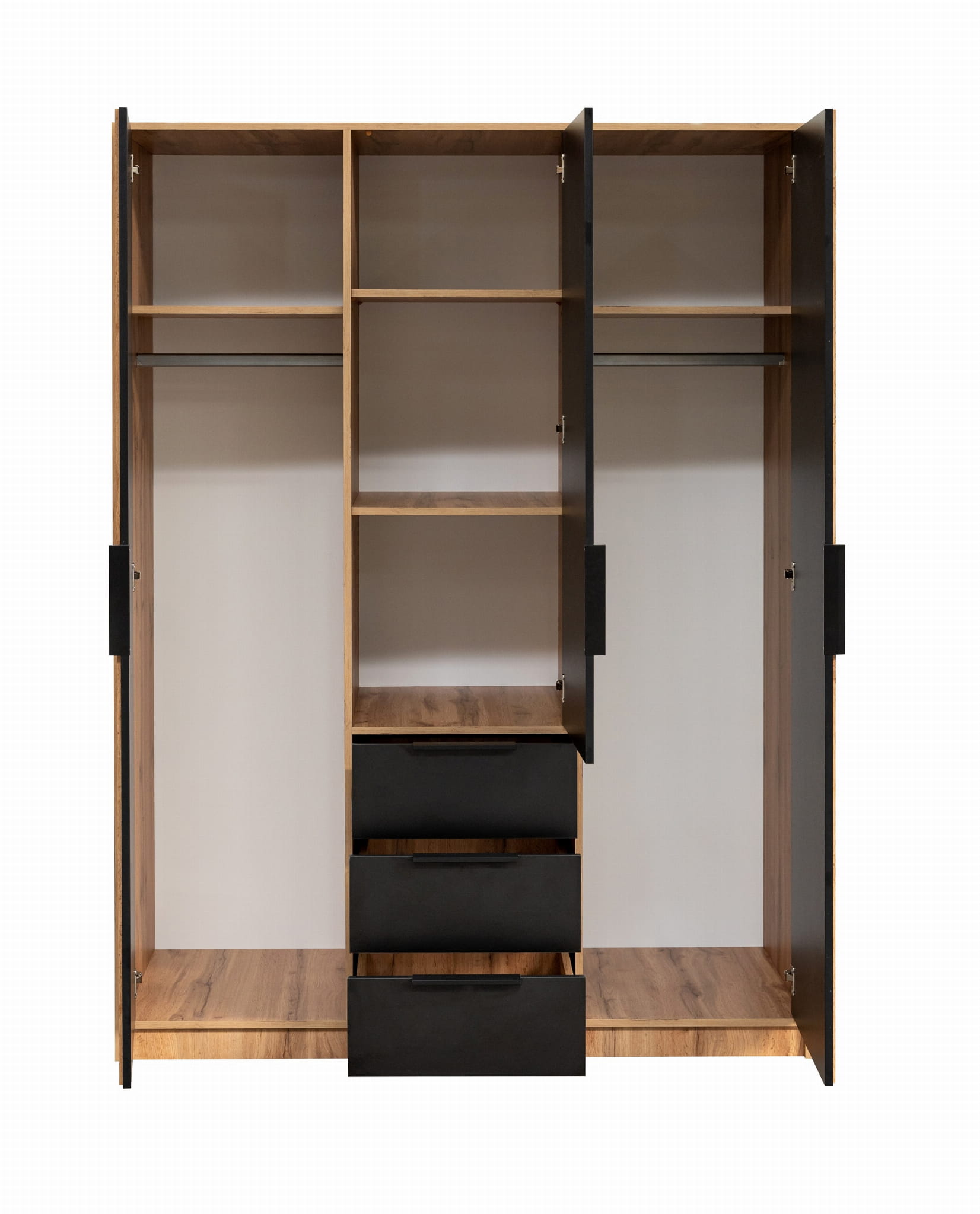 Układ wnętrza szafy zapewnia funkcjonalność oraz wygodę codziennego użytkowania.