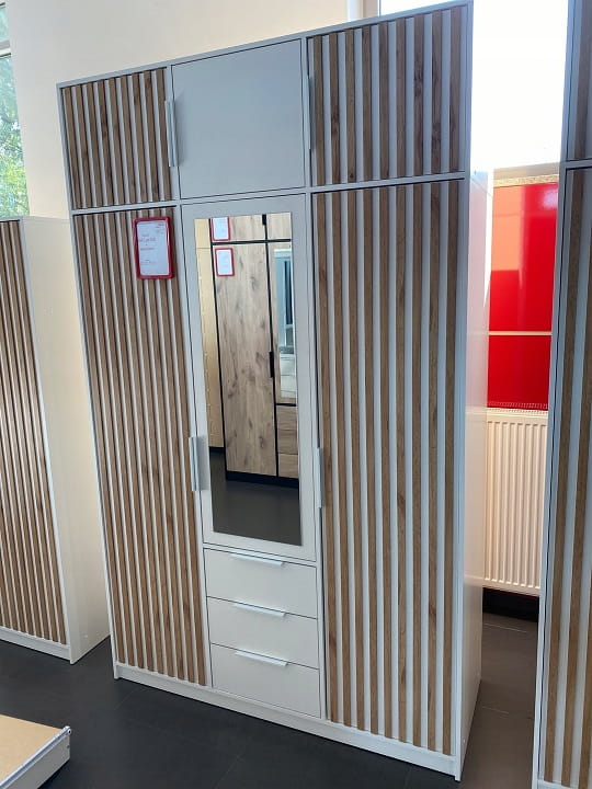 Szafa otwierana z lustrem i lamelami + nadstawka BALI LUX D3 150 biały/ lustro