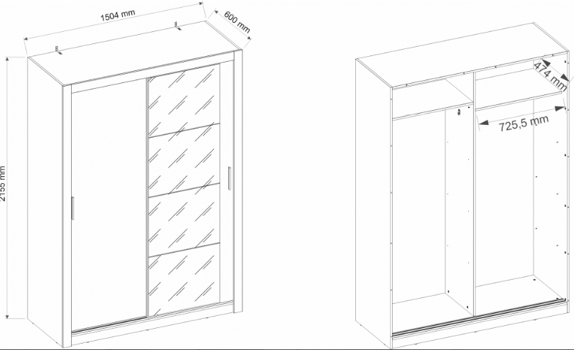 Kompaktowa w wymiarach, wąska szafa z dwojgiem drzwi przesuwnych. Idealnie sprawdzi się w mniejszych pomieszczeniach, np. sypialni, garderobie, przedpokoju czy pokoju młodzieżowym.