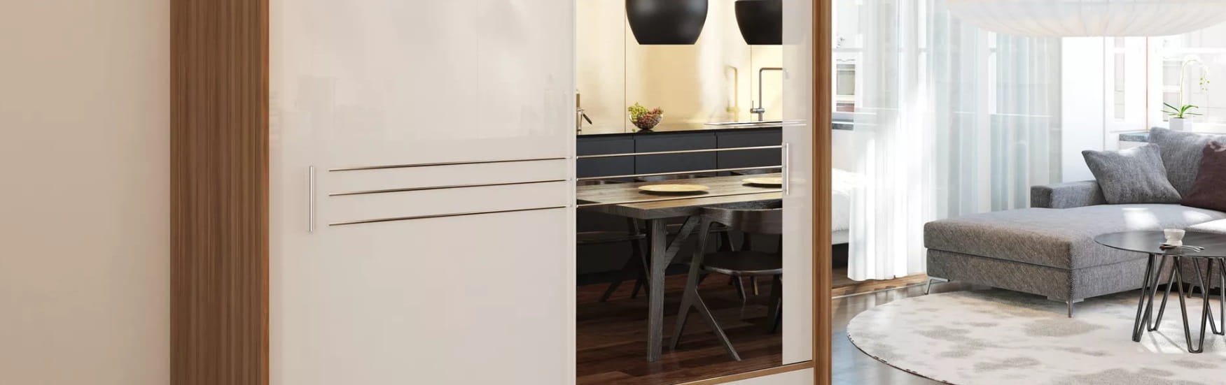 Szafa przesuwna AMSTERDAM 203 śliwa/ biały połysk + lustro