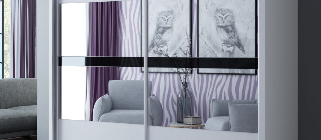 Szafa przesuwna BATUMI 203 biały/czarne szkło + lustro