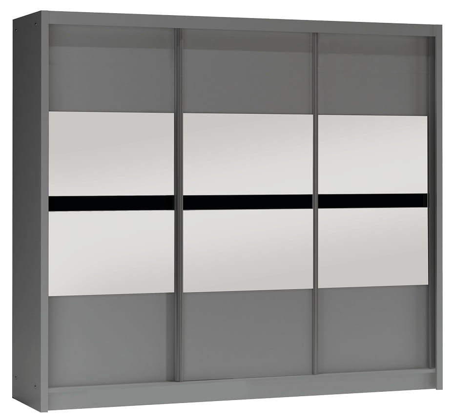 Szafa przesuwna BATUMI 250 grafit/czarne szkło + lustro