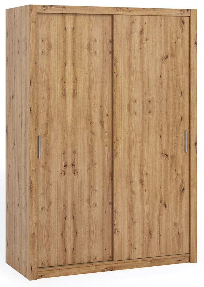 Szafa BONO 150 idealnie sprawdzi się w nowoczesnych wnętrzach. Model wyposażony został w pojemne półki oraz funkcjonalne drążki na wieszaki wewnątrz szafy.