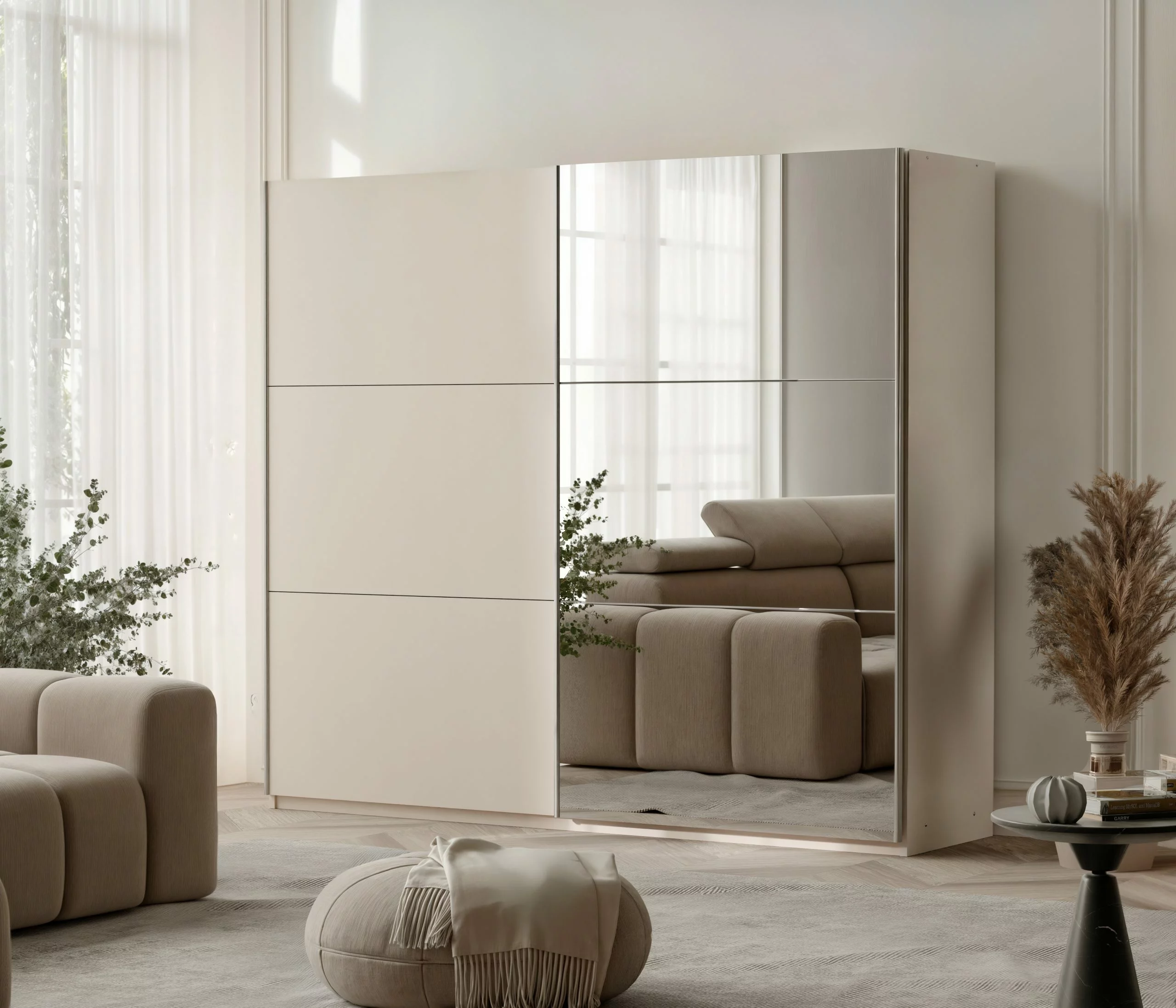 Szafa przesuwna VIGO 200 beż/ kaszmir + lustro