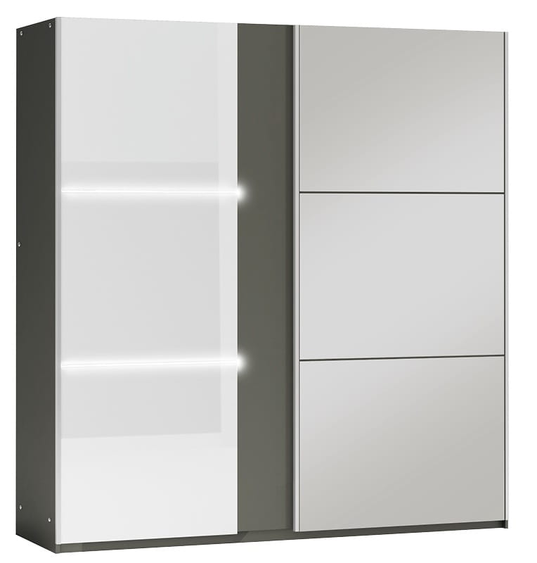 Szafa przesuwna z oświetleniem LED TUNIS 200 grafit+ biały połysk + lustro