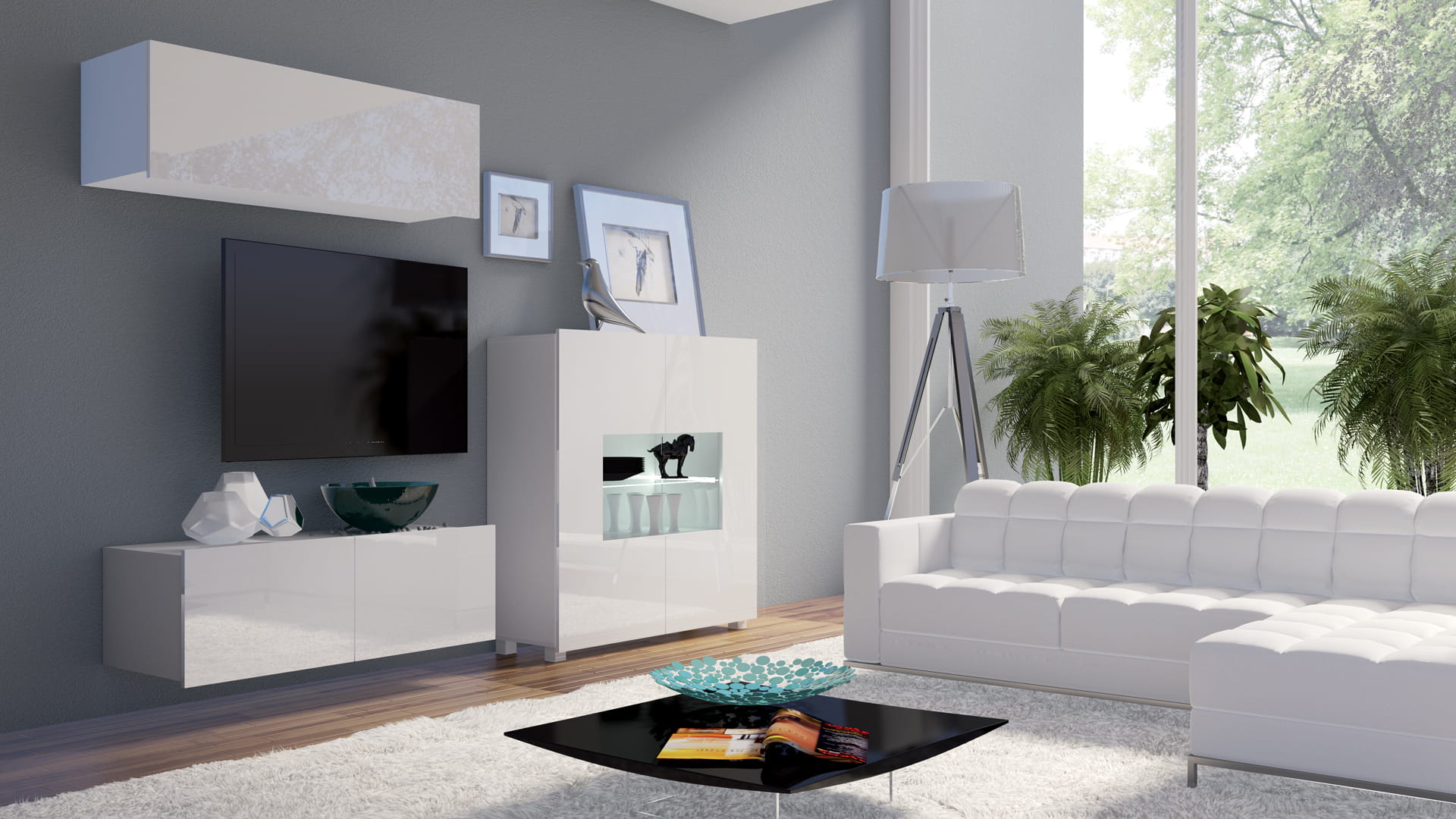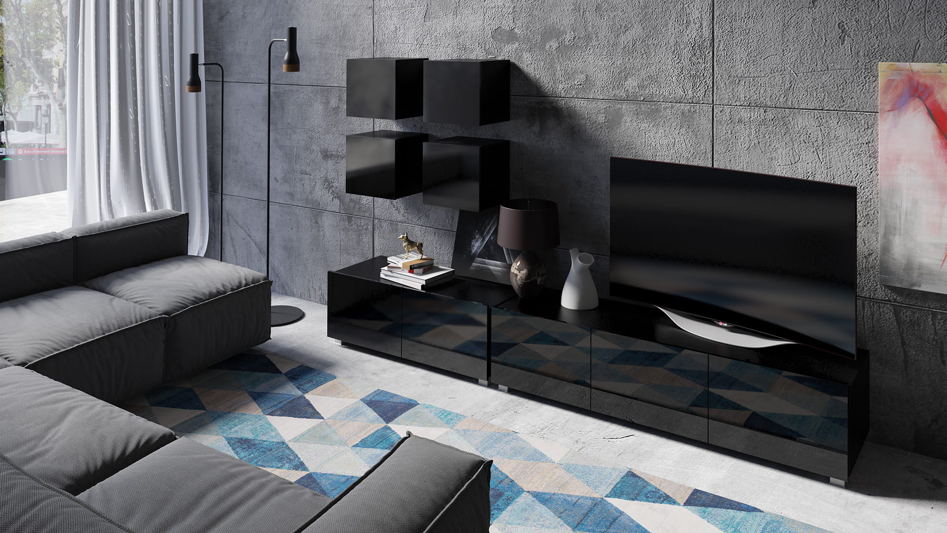 Szafki RTV, stoliki nocne oraz półka KWADRAT wykonane są uniwersalnie tzn. można je zawiesić lub postawić na podłodze po dokręceniu nóżek, które znajdują się w zestawie.