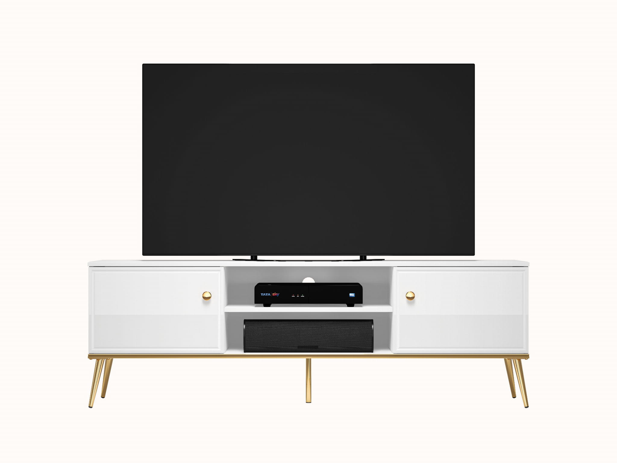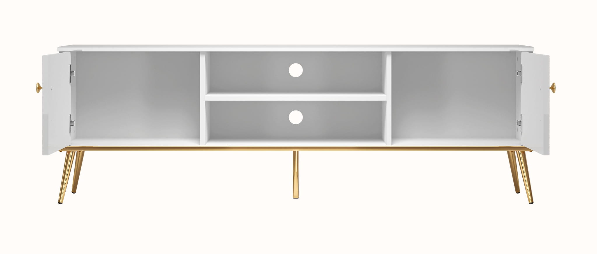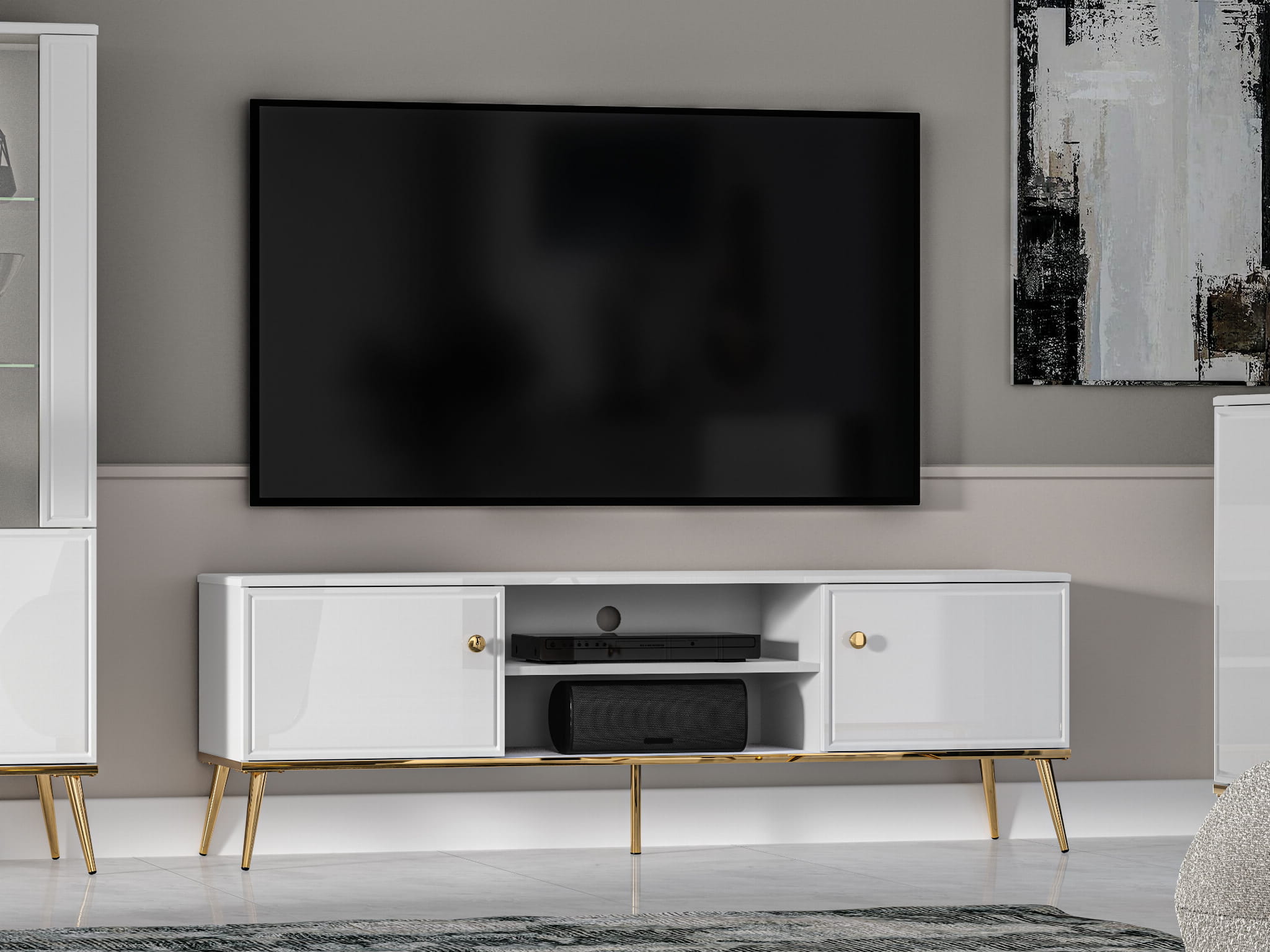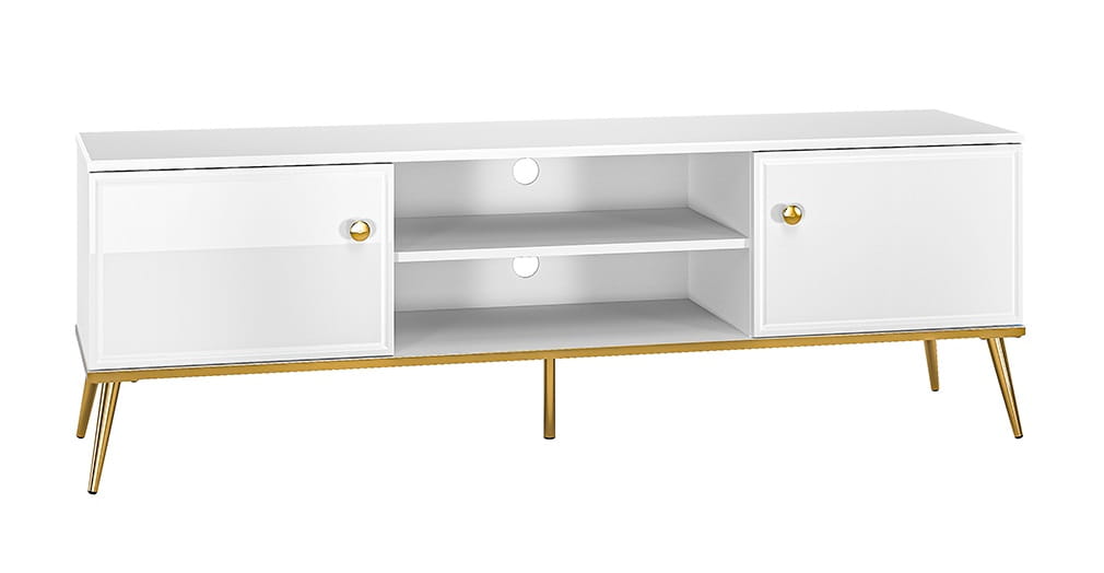 Szafka RTV GOLDIN 06 Biały + MDF Biały Połysk + złoty
