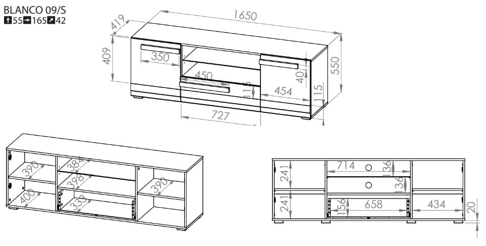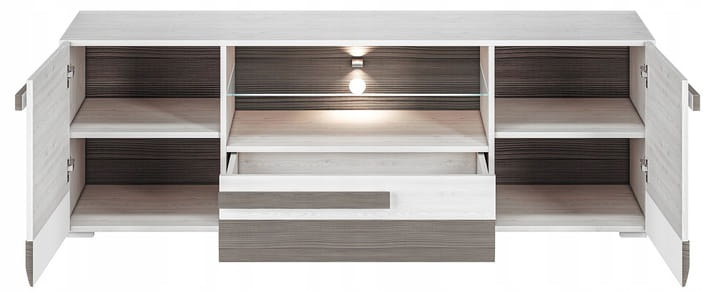 Szafka RTV 165cm BLANCO 09 sosna śnieżna / MDF new grey