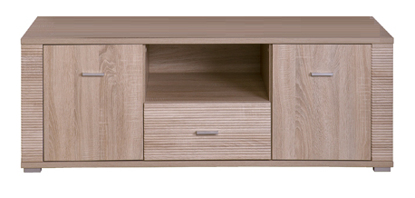 Szafka RTV z kolekcji GRESS jest przeznaczona do tego by postawić na niej telewizor a to za sprawą dużego wytrzymałego blatu. Dodatkowo mebel posiada półkę otwartą, półki zamkniete oraz szufladę, które są doskonałym miejscem na przechowywanie takich drobiazgów jak piloty, płyty lub czasopisma. Staranne wykończenie i wysokiej jakości materiały dają możliwość pełnego zadowolenia z tej szafki. Tak jak wszystkie meble z kolekcji GRESS również ona posiada ozdobne ryflowania.
