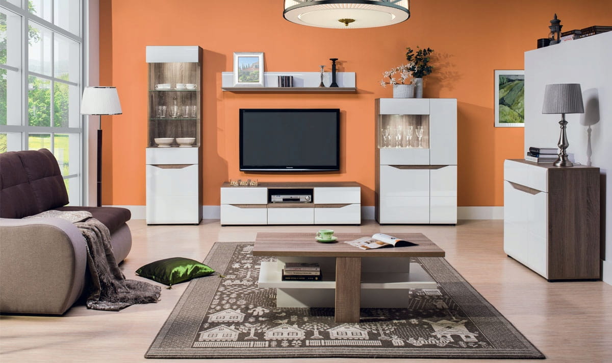Szafka RTV LIONEL 150cm LI-1 biały połysk/sonoma truflowa