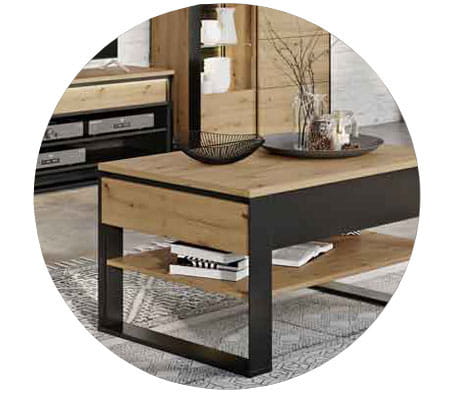 Mebel wykonano z wytrzymałej płyty laminowanej wykończonej trwałym obrzeżem ABS. Komfortowe użytkowanie wspomaga mechanizm PUSH TO OPEN.