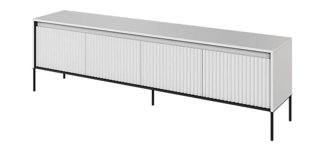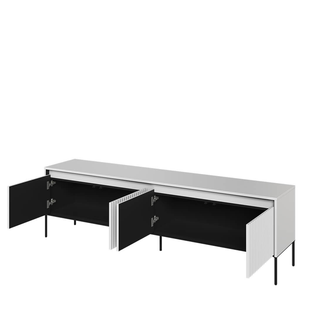 Szafka RTV długa jest niezbędnym meblem w każdym salonie. To na niej możesz ustawić telewizor, konsolę do gier, odtwarzacz DVD i wiele innych urządzeń multimedialnych. Została starannie zaprojektowana, aby spełnić wszystkie Twoje potrzeby. Fronty ryflowane to detale, które nadają naszej szafce RTV niepowtarzalnego charakteru. Sprawiają, że nabiera ona tekstury, elegancji i głębi. Ryflowania są nie tylko designerskim elementem, ale również przyciągają wzrok i wyróżniają mebel spośród innych.